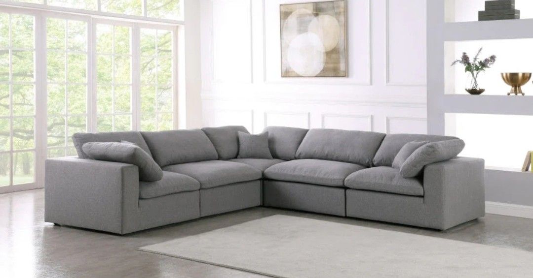 Serene Linen / Wood Grey Deluxe Cloud Modular Sectional