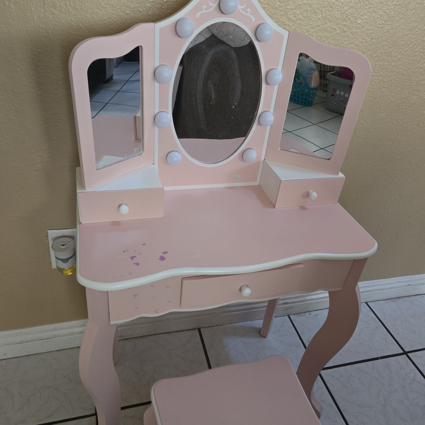 Little girls vanity, hardly used. Does have a few stains on top and infront. 30$ lights work.