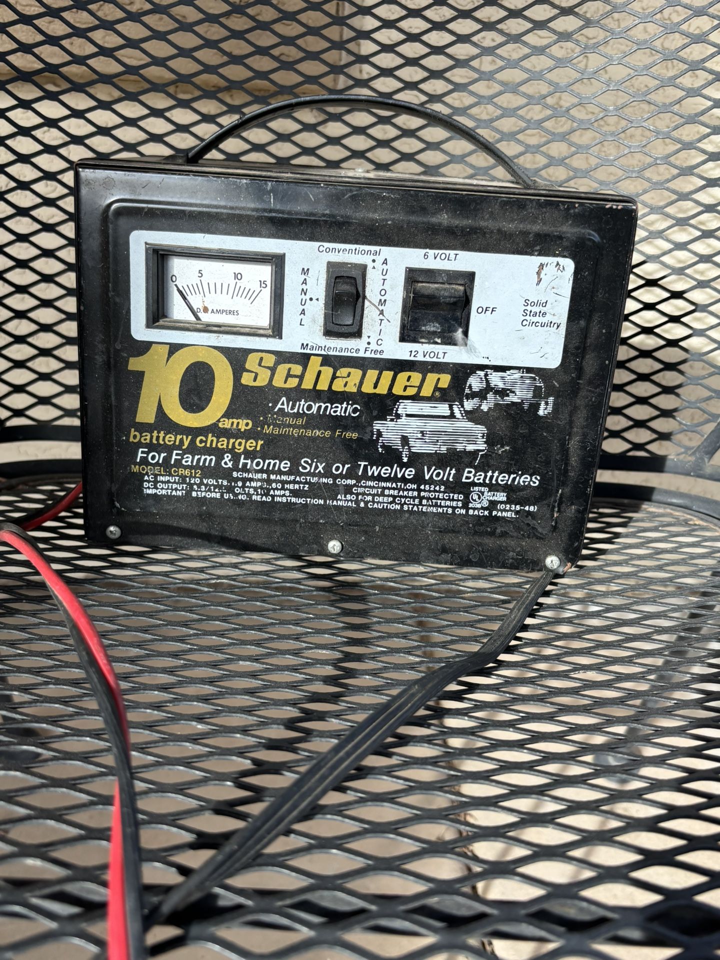 vintage Schauer CR612 10 Amp. Battery charges that works on 6 and 12 volt systems. Been sitting need gone