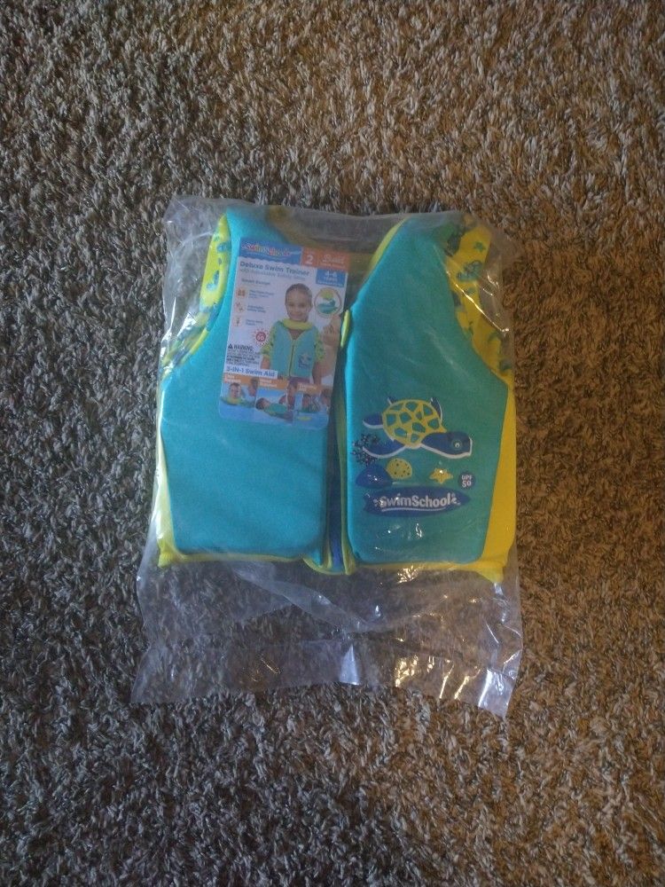 Brand new in original packaging. Swim school swim aid/lifejacket for kids age 4-6 years old, maximum weight 50 lbs. $25 OBO