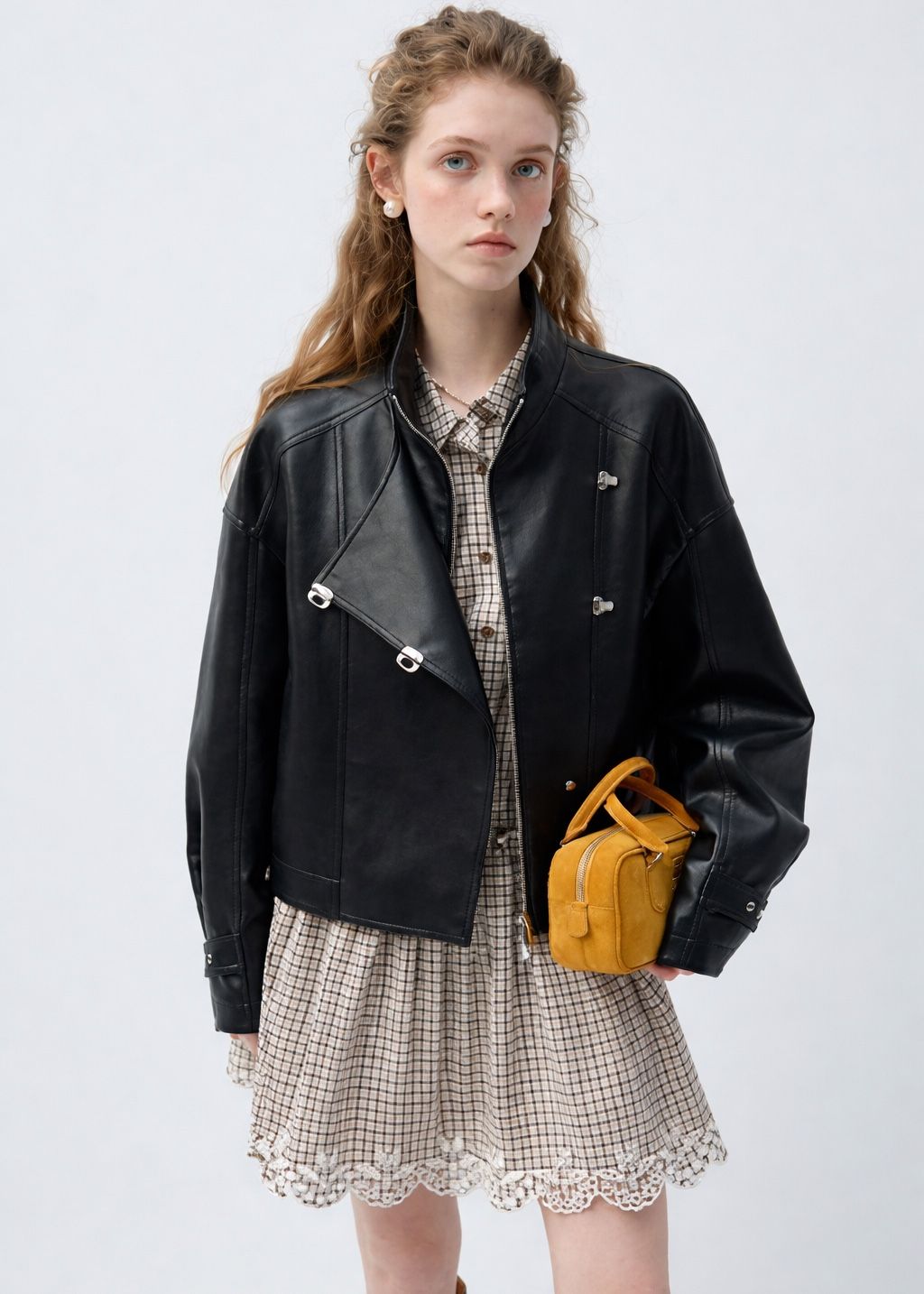 The Orvani Minimal Leather Zip Jacket features a clean, structured silhouette crafted from smooth leather-look fabric for a refined, modern finish. Designed with a high collar, asymmetrical zip closure, and subtle metal hardware, it delivers understated edge without excess detail. Adjustable cuff straps and a streamlined fit make it an effortless layering piece for everyday wear, balancing utility and minimal design.