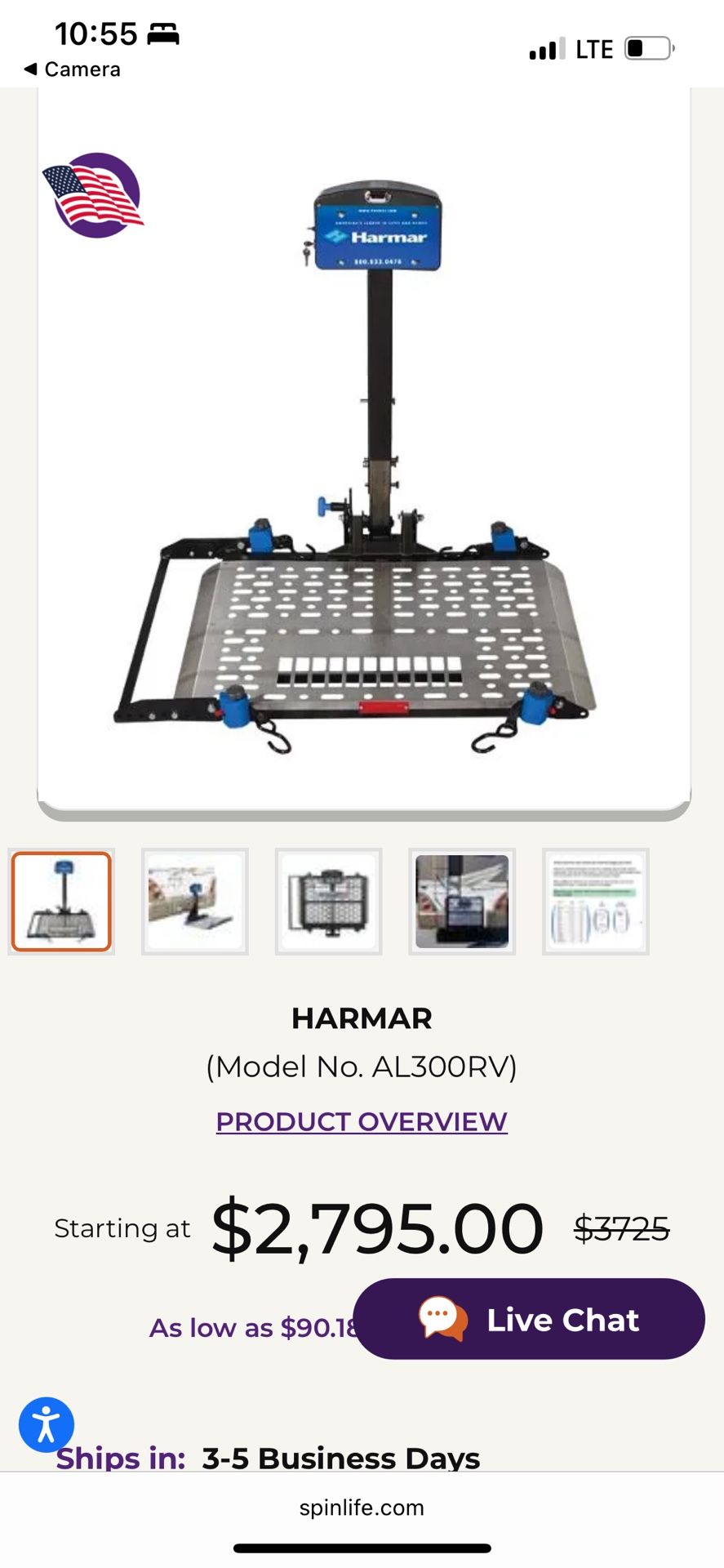 Barely used Harmar power lift with RV hitch adapter in great shape. This is a Stock photo of listing. https://offerup.com/redirect/?o=aHR0cHM6Ly93d3cuc3BpbmxpZmUuY29tL2ZpbGVzL0FMMzAwUlYlMjBTZWxsJTIwU2hlZXQucGRm
