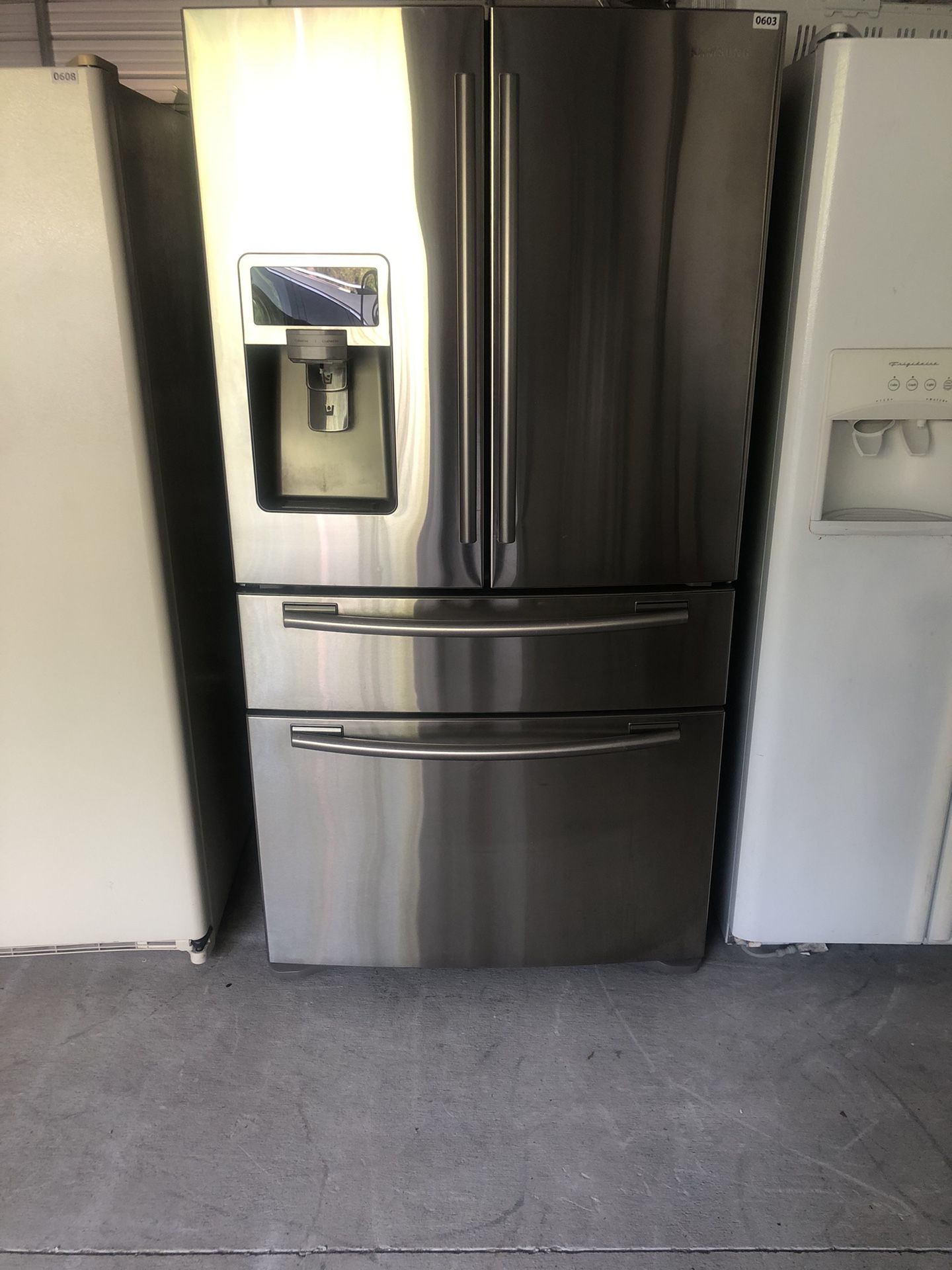 Samsung Stainless (4) Door Fridge Works great Clean Ice Water Filter 36 Inches wide 68 1/2 Inches Tall 26 cu ft Selling for $999 Delivery $125