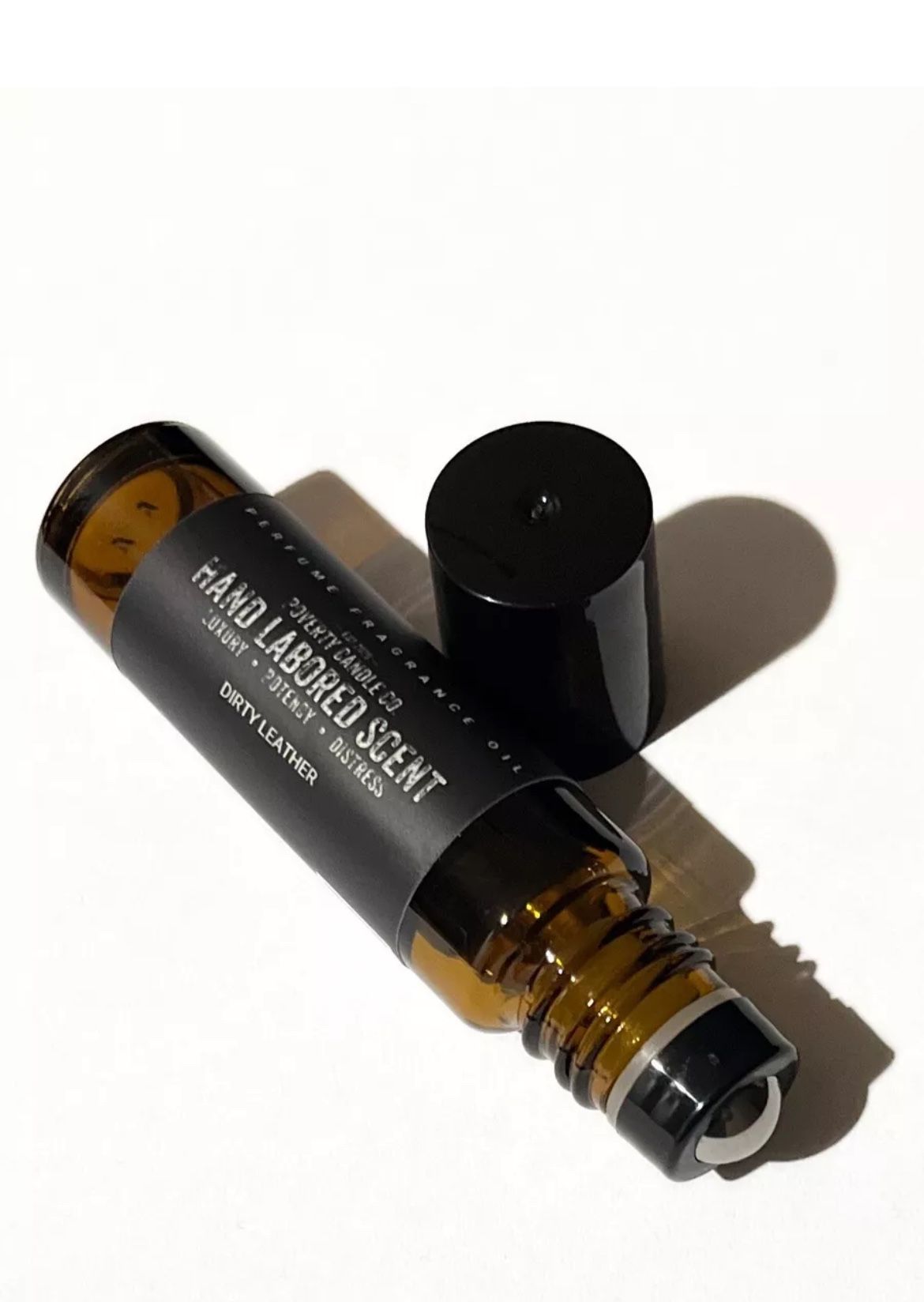 By poverty co, dirty leather roller ball DIRTY LEATHER FRAGRANCE OIL. This product is made with fractionated coconut oil /jojoba oil and fine fragrance blends . LEATHER/TEAKWOOD/RED WINE/ISO SUPER/CLOVE/LABDANUM/TOBACCO/ROSE/BERGAMOT /LAVENDER.
