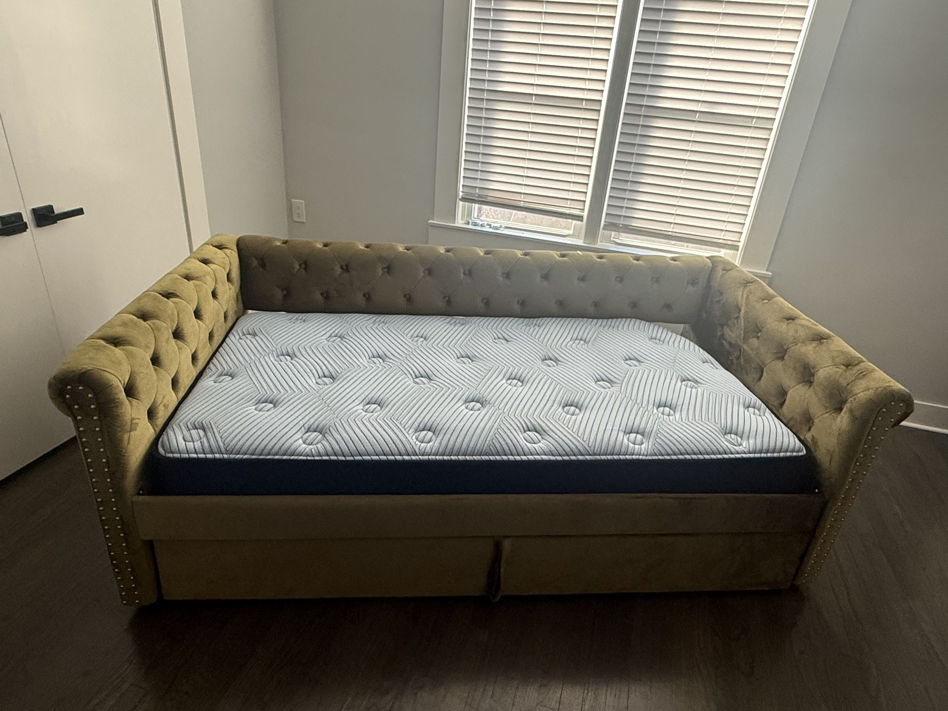 Gently used 2 bed Daybed from Bed Bath & Beyond with one mattress. The unit is too big for guest room & the space is needed. The daybed is in near perfect condition & the mattresses included is the spare & hasn’t been used. Asking $475 obo, please no low ballers. Serious inquiries only. Daybed was bought in May of 2025 for guest bedroom. The mattress that will be included was used for the bottom trolley portion of bed but was too big and difficult to pull out and was not used. Accepting Cash or Zelle Payment once pick up is confirmed. condition: like new manufacturer/make: Bed Bath & Beyond/ Christoper Knight Home size | dimensions: 86"L X 45"W X 31"H