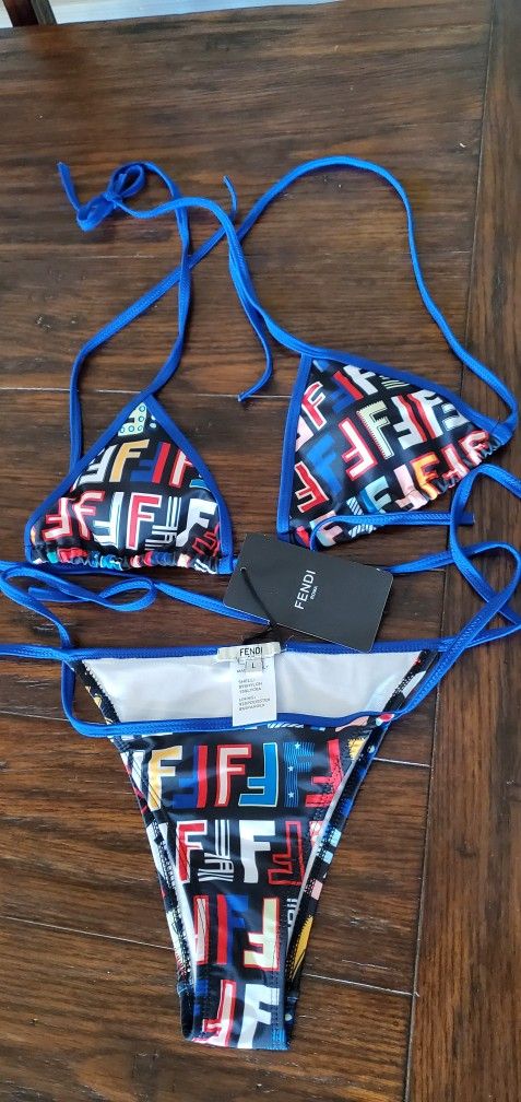 Bikini FENDI dupe I got it online as a original, also labeled shows large; runs small-medium. Nice colors. OBO Bikini que adquirido en Internet como original marca FENDI y supuestamente talla grande, corre más bien chico a mediano. Muy bonitos colores el material... Ofrece..