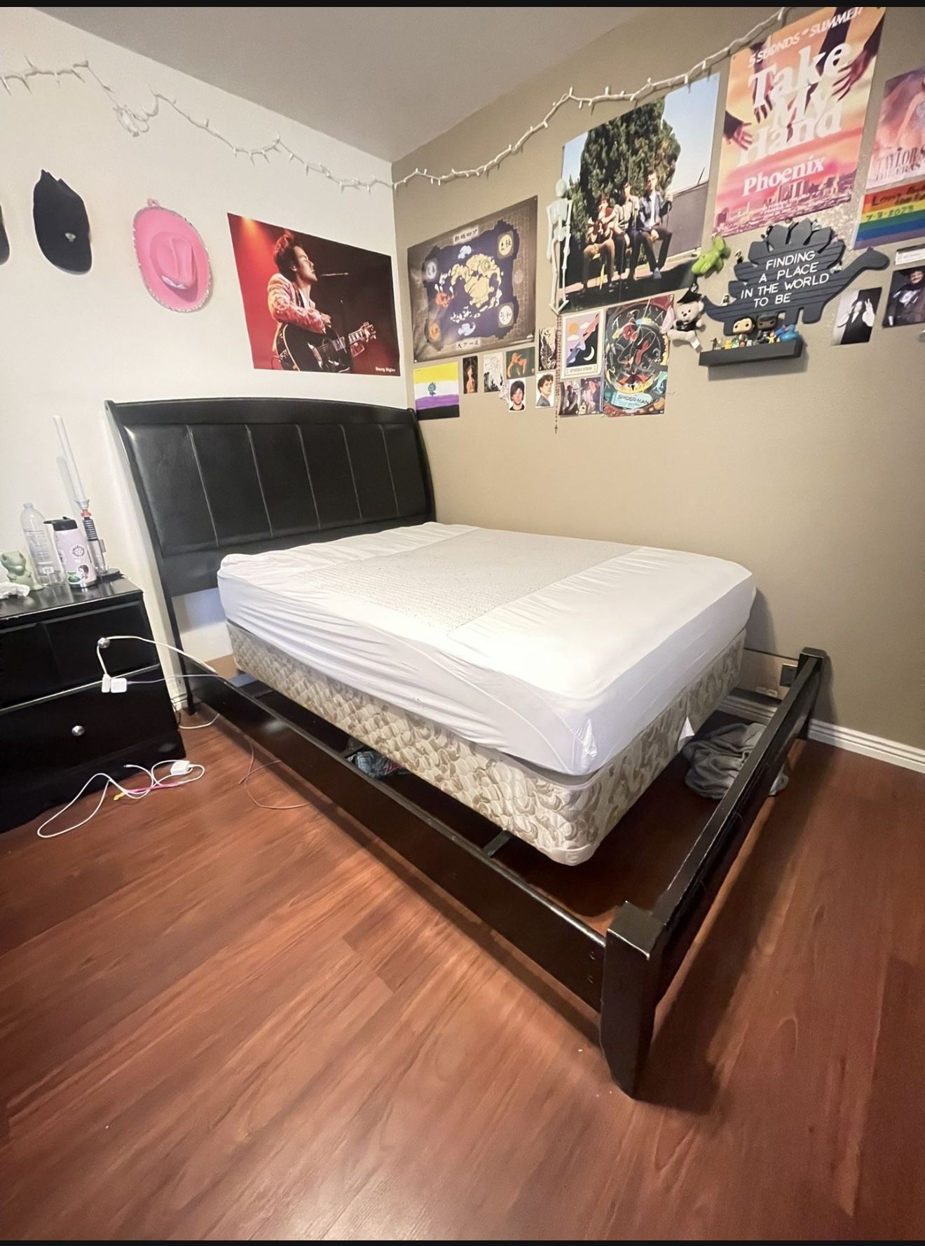 The mattress on bed is full size (not included) that’s why it looks smaller. Delivery available