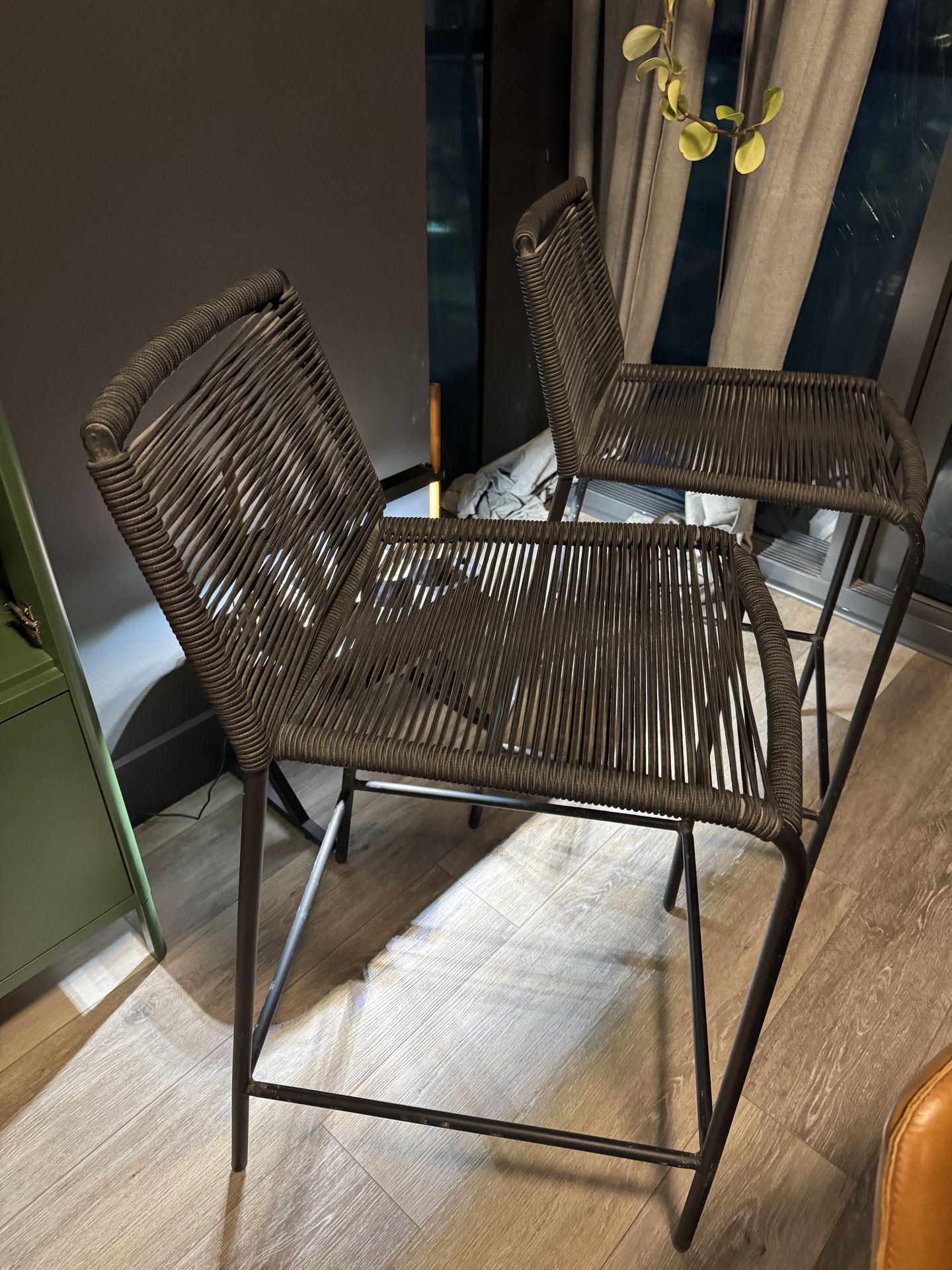 Furniture bundle in good condition. Perfect for a balcony, small patio, or apartment. Includes: • 1 small balcony table • 2 balcony chairs • 2 indoor bar stools • 1 decorative plant pot Everything is in good condition and ready to use. Selling as a bundle. Great for someone setting up a small outdoor space or kitchen bar area. Pickup only.