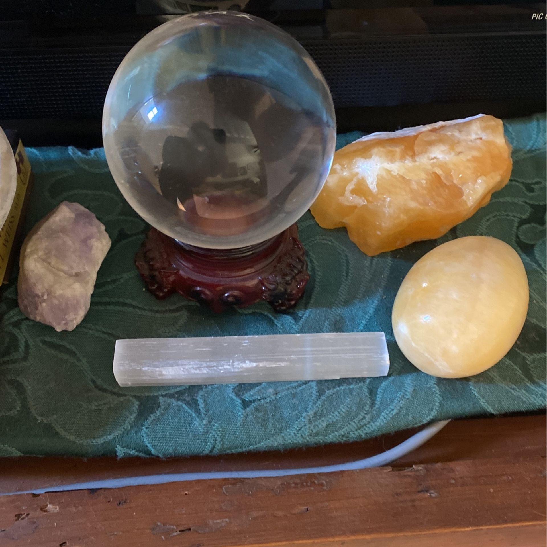 Crystal ball with stand, and crystals