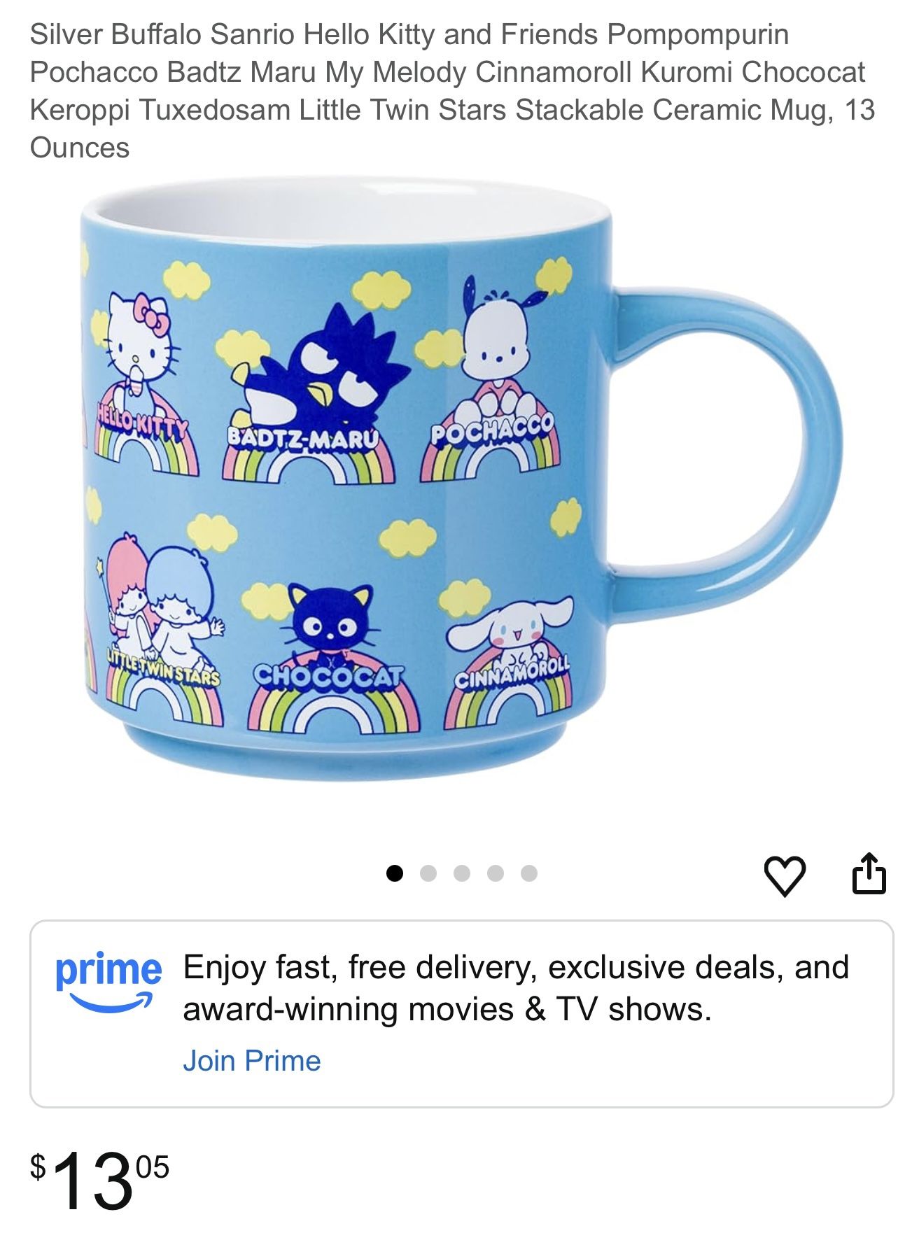 Silver Buffalo Sanrio Hello Kitty and Friends Pompompurin Pochacco Badtz Maru My Melody Cinnamoroll Kuromi Chococat Keroppi Tuxedosam Little Twin Stars Ceramic Mug, 13 oz
