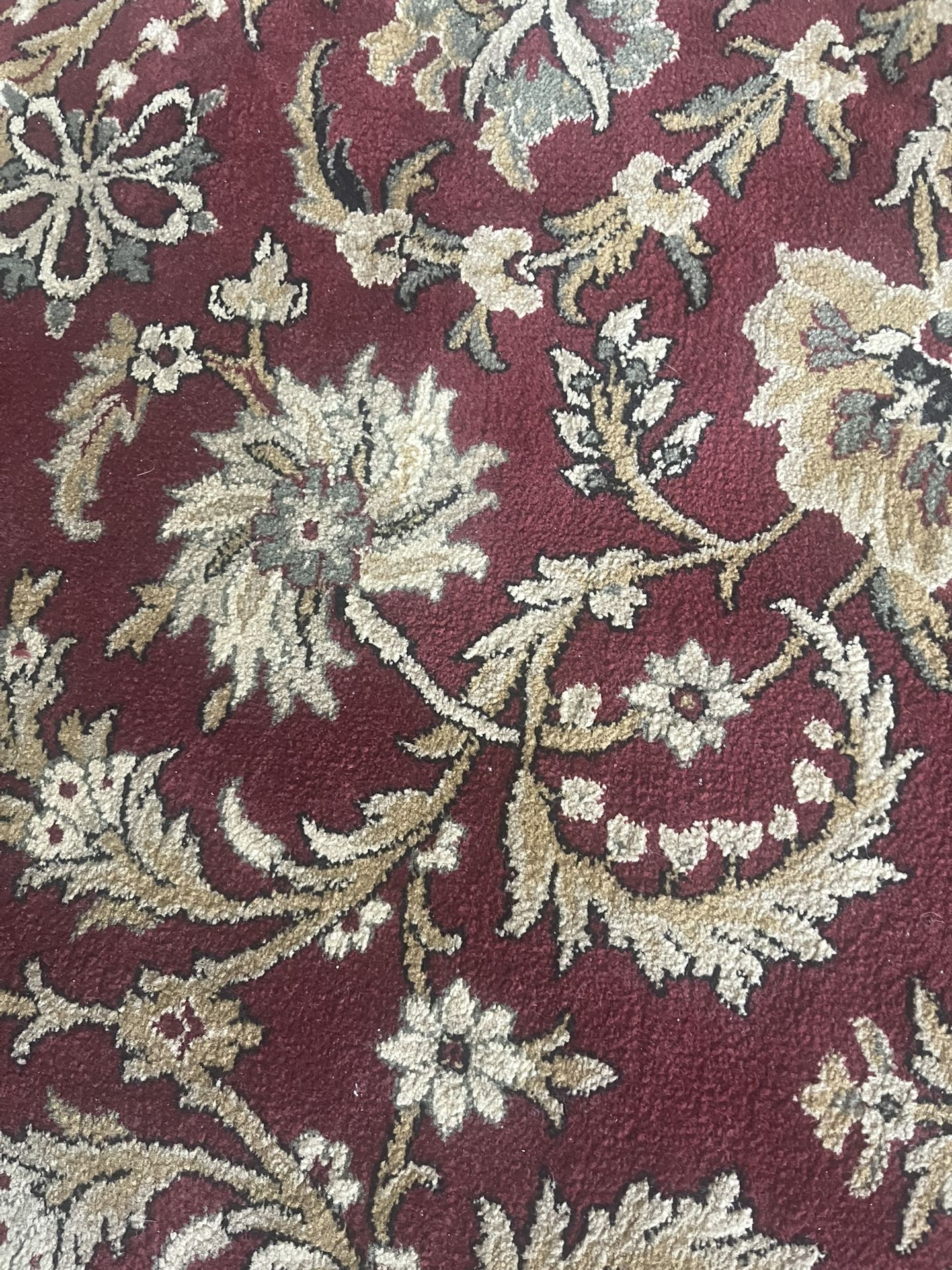 TALEGAN SCARLET Rug 79” X116” , Clean , no smoke and no dog at home . Nice Rug Burgundy ,Beige Color , good condition