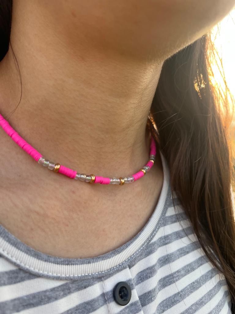 Summer Collection!! 17’’ -18’’ Elastic Necklace, Color Bright Pink
