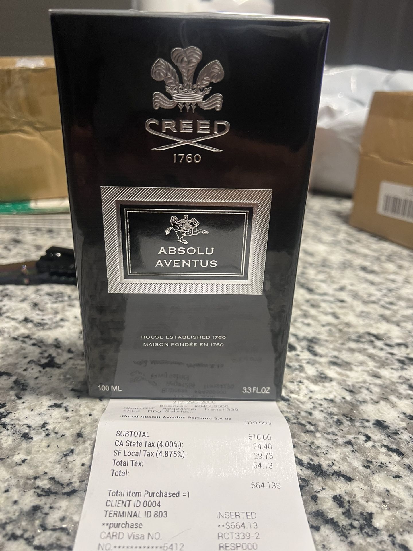 Brand new, factory sealed Creed Absolu Aventus (100ml). Never opened or sprayed. Bought from an authorized retailer and I have the receipt for proof β 100% authentic. This is the limited Absolu Aventus release β richer, smoother, and longer-lasting than the regular Aventus. Amazing projection and compliments. Price is $225 which is below retail. No trades. Serious buyers only. Cash/local pickup preferred. Message me if interested π