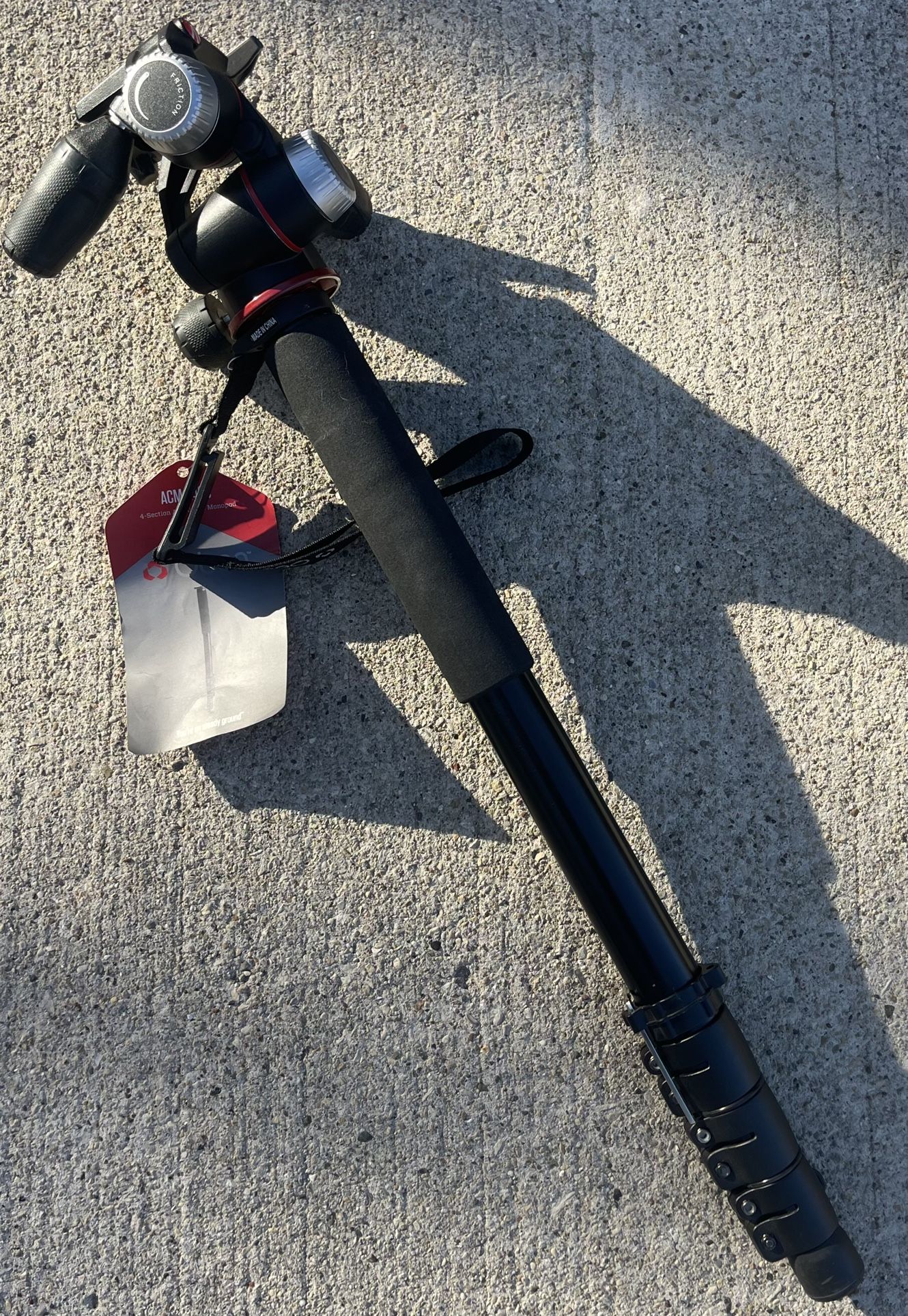 Oben ACM-2400 mono stand and carrying strap with Manfrotto Maxpro-3W head and mounting plate, the head is 3 way tilting with variable friction. Great for amateur or professional photographers
