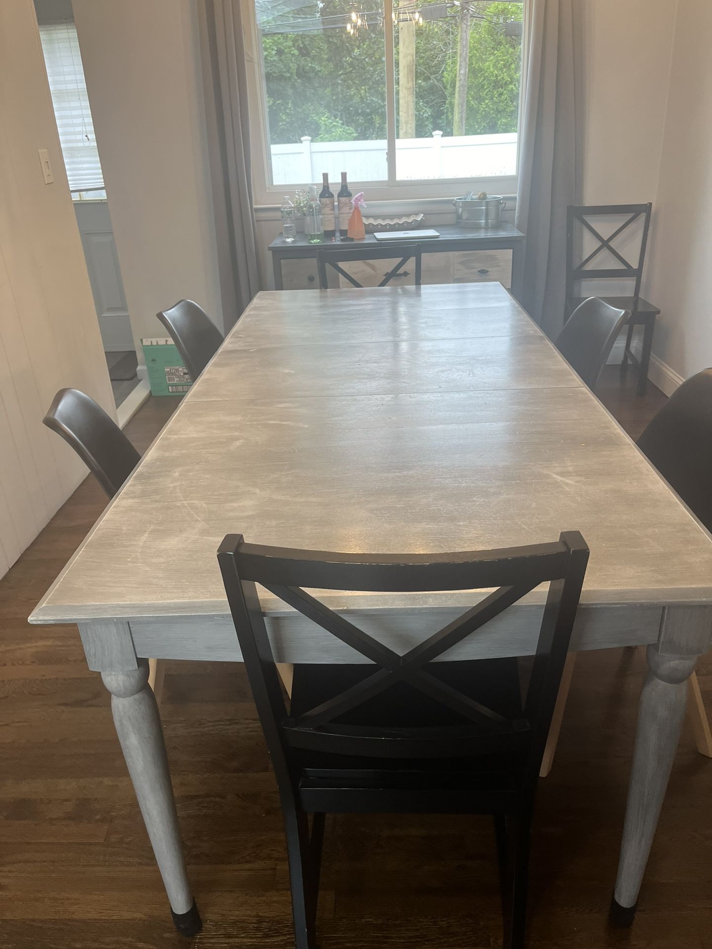 Wood dining room table Without chairs - $175 With chairs - $225 Top is a little bit worn.