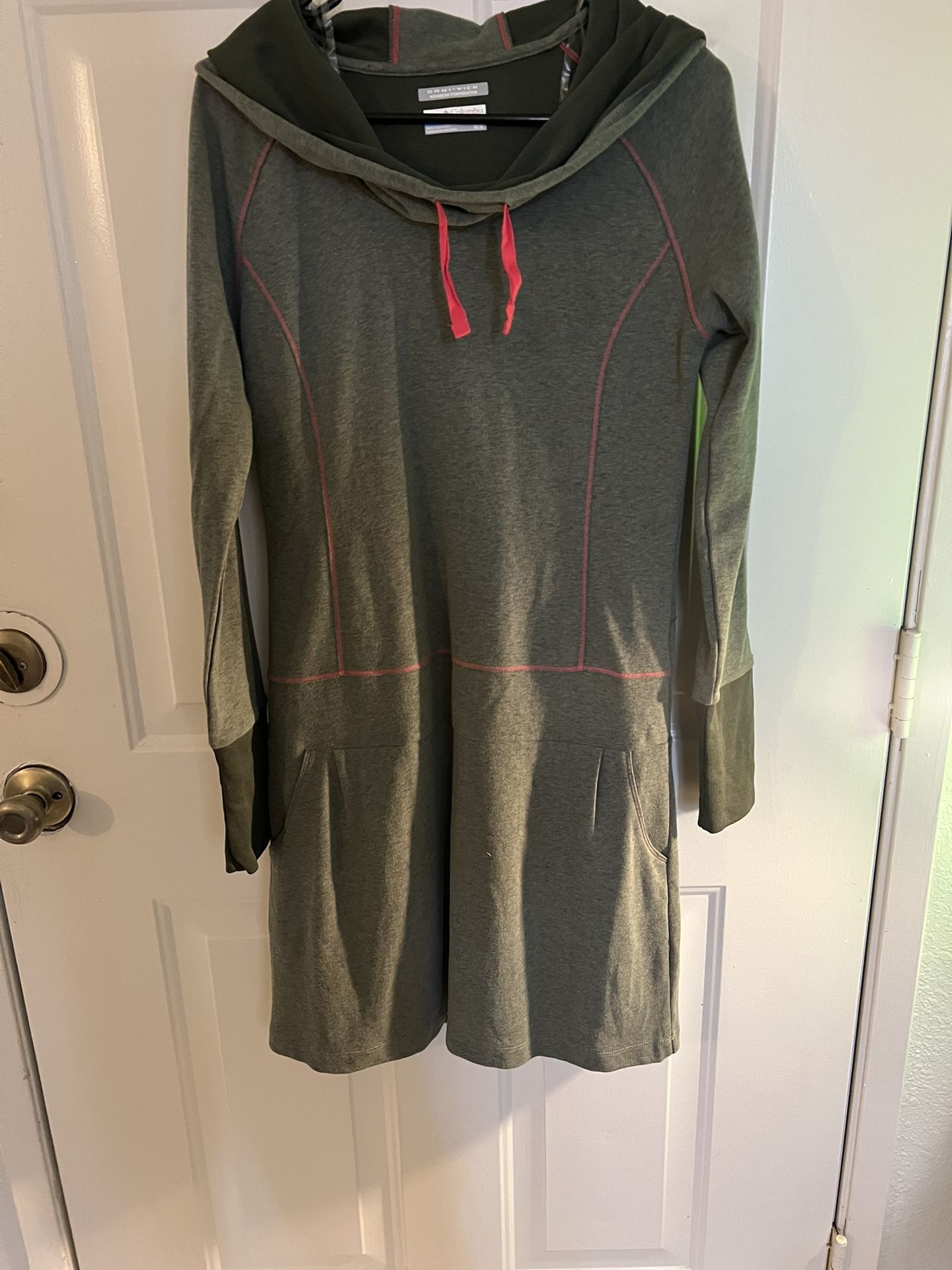 Columbia omni-wick women long sleeve hoodie active dress green/pink. Size Medium