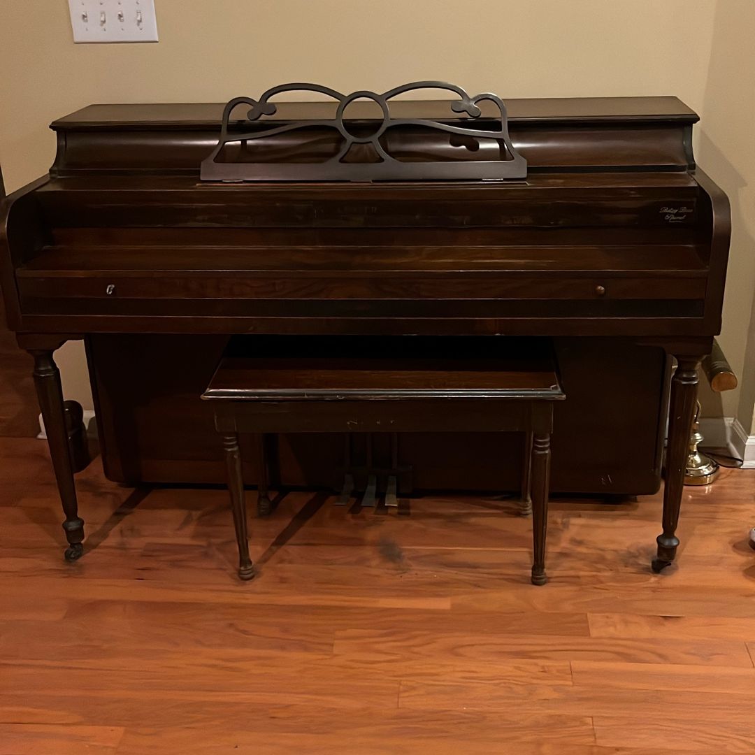 Moving and MUST SELL to downsize. There’s nothing wrong with the piano. It just has a low price because I must sell it. This piano has been in my family and has been well loved. It’s mahogany in color and made of very heavy wood It has a piano bench that holds your sheet music. The piano is 38 inches tall, 58 inches wide, and 24 inches deep. Hope someone can use this and enjoy it. Must be able to move ii. It has wheels to make it easier. Priced low to sell.