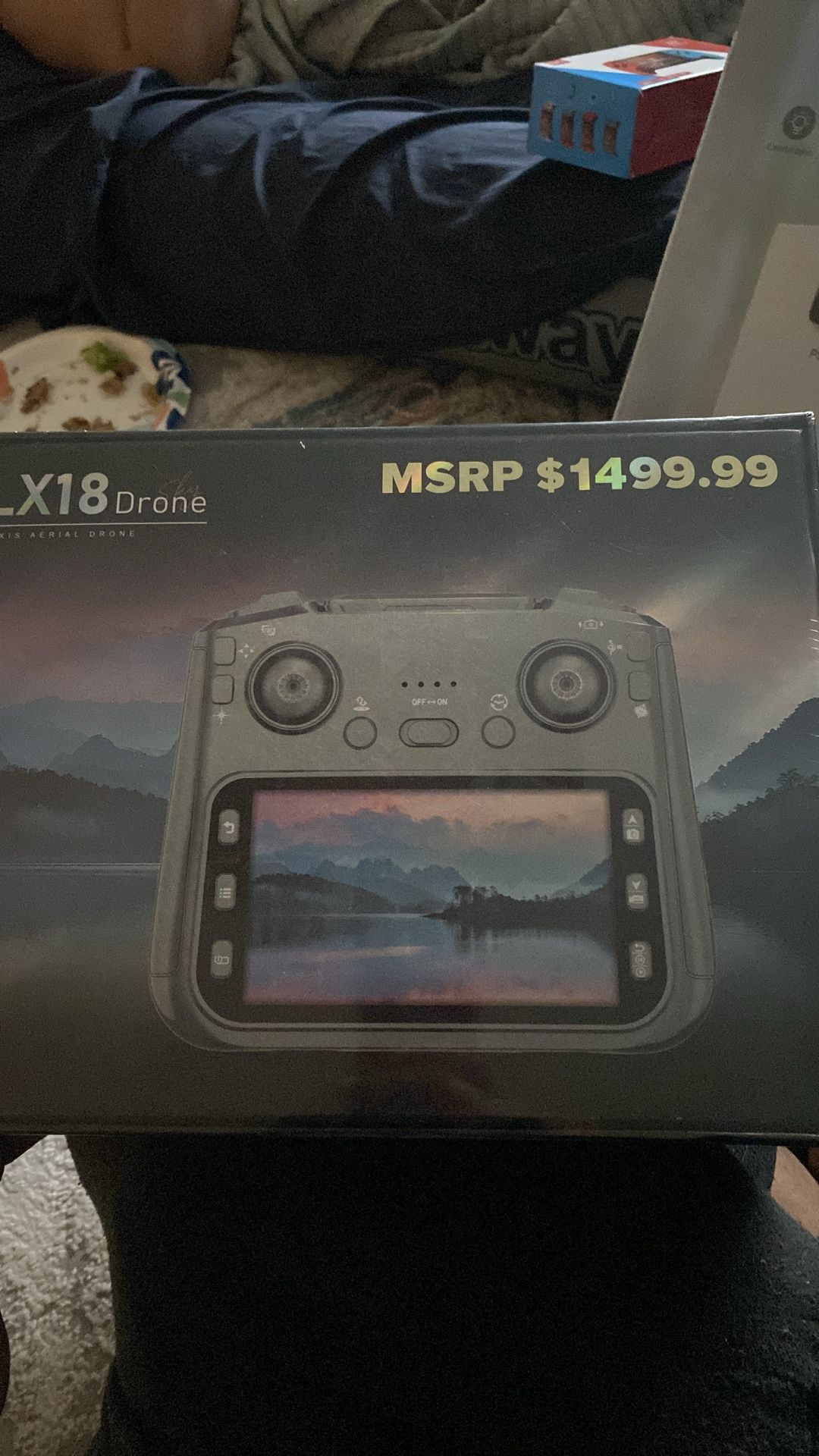 Brand new TLX18 drone, never used – still in original packaging. Comes with built-in screen controller (no phone needed), super easy to fly and perfect for beginners or anyone looking to get into drones. 📸 Features: • HD camera for photos & videos • Controller with display screen • Foldable design (easy to carry) • Stable flight + beginner friendly • Great for outdoor fun, trips, and practice flying Everything included in box. ⚠️ Ignore the retail price on the box – priced to sell. (Open to offer)