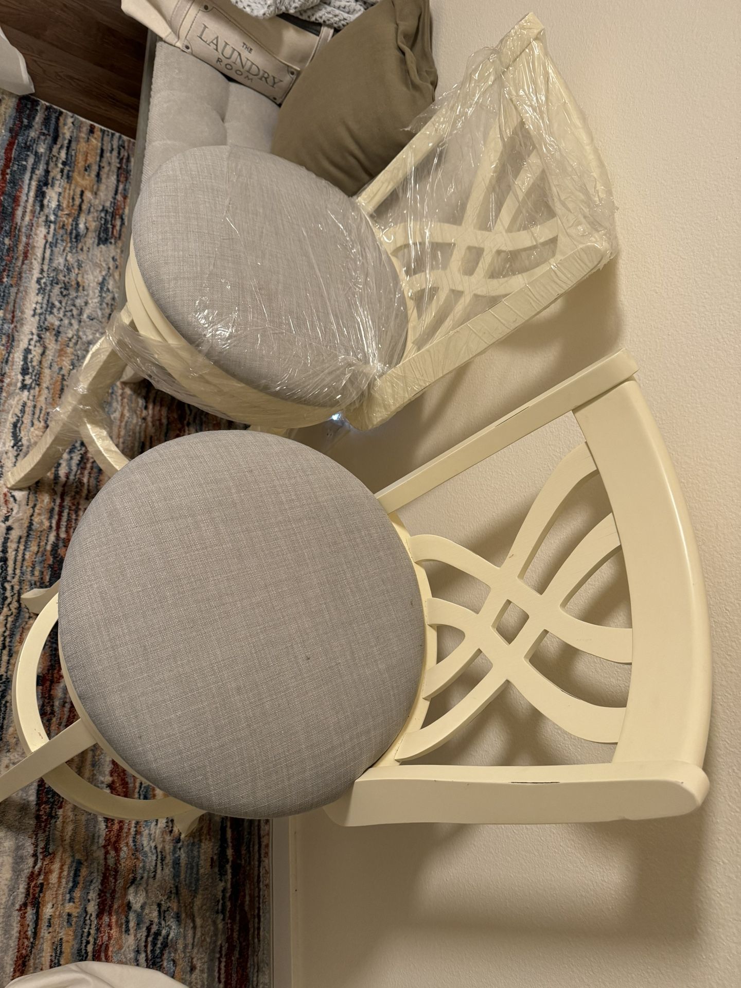 2 swivel bar stool with 2 1/2 fabric padded one is brand new. retail price each $230 total for both $220 = each $110 firm on price cash only $220 pick up at Kent, WA 98030