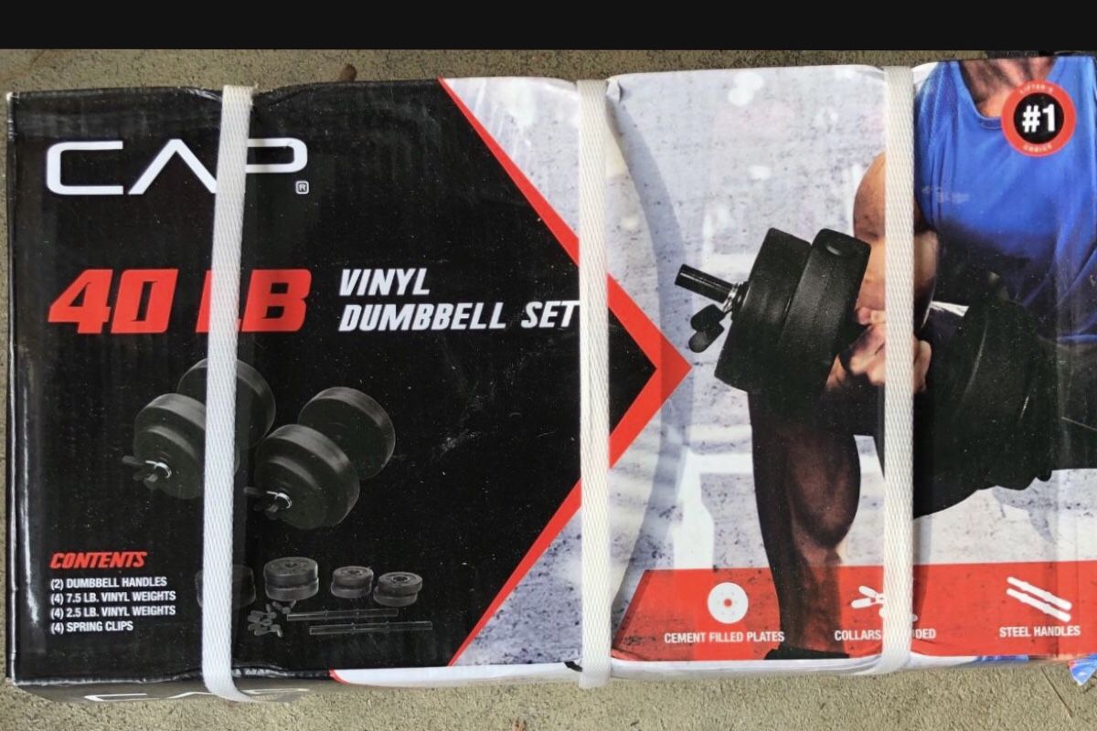 Brand new CAP 40lb dumbbell weight set Includes (2) handles (2) 7.5 weight plates (2) 2.5 weight plates (4) spring clips
