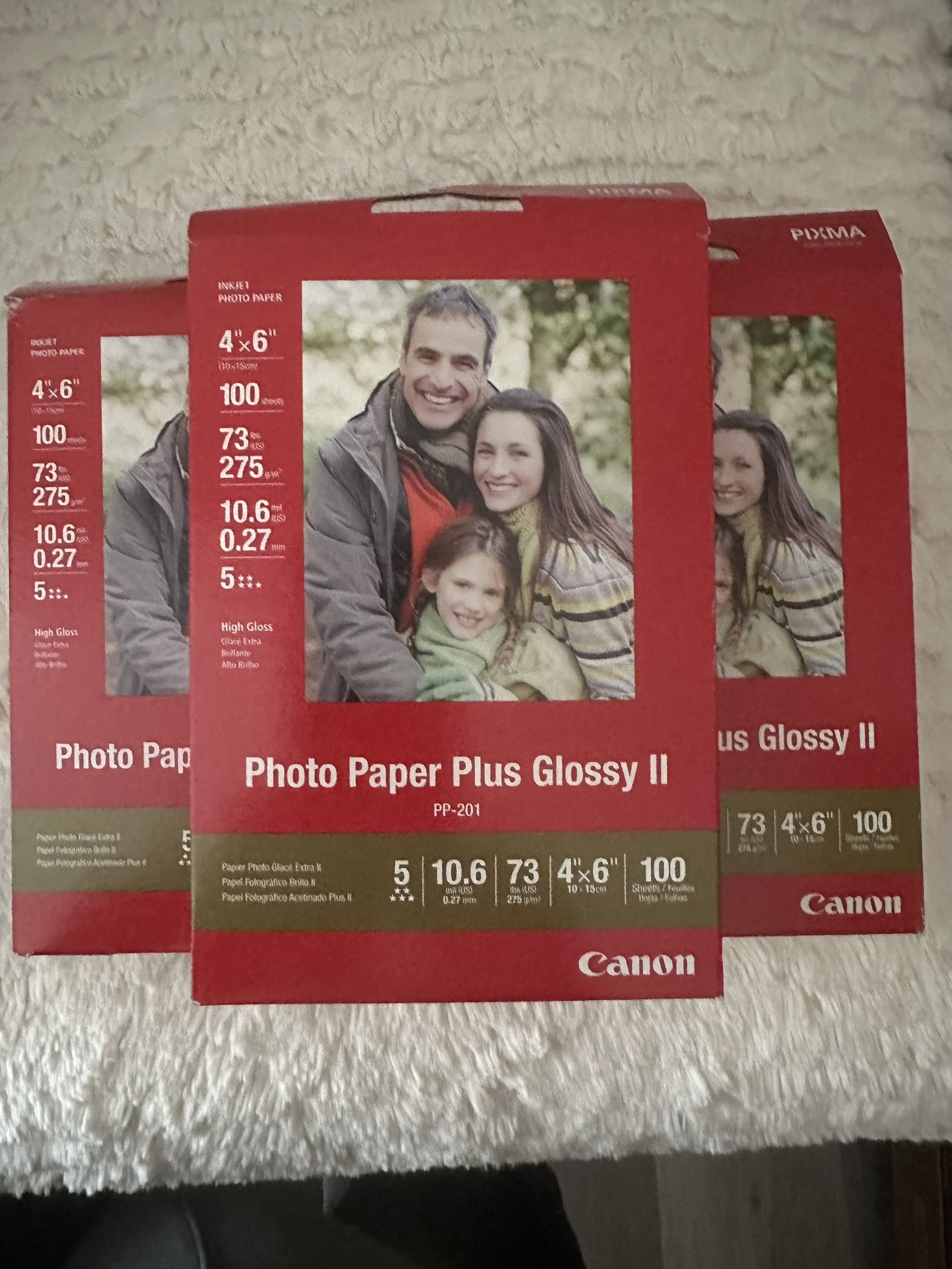 Canon Photo Paper Plus Glossy II 4x6 100 Sheets. I Have 5 Boxes $7 Each Or $30 For All