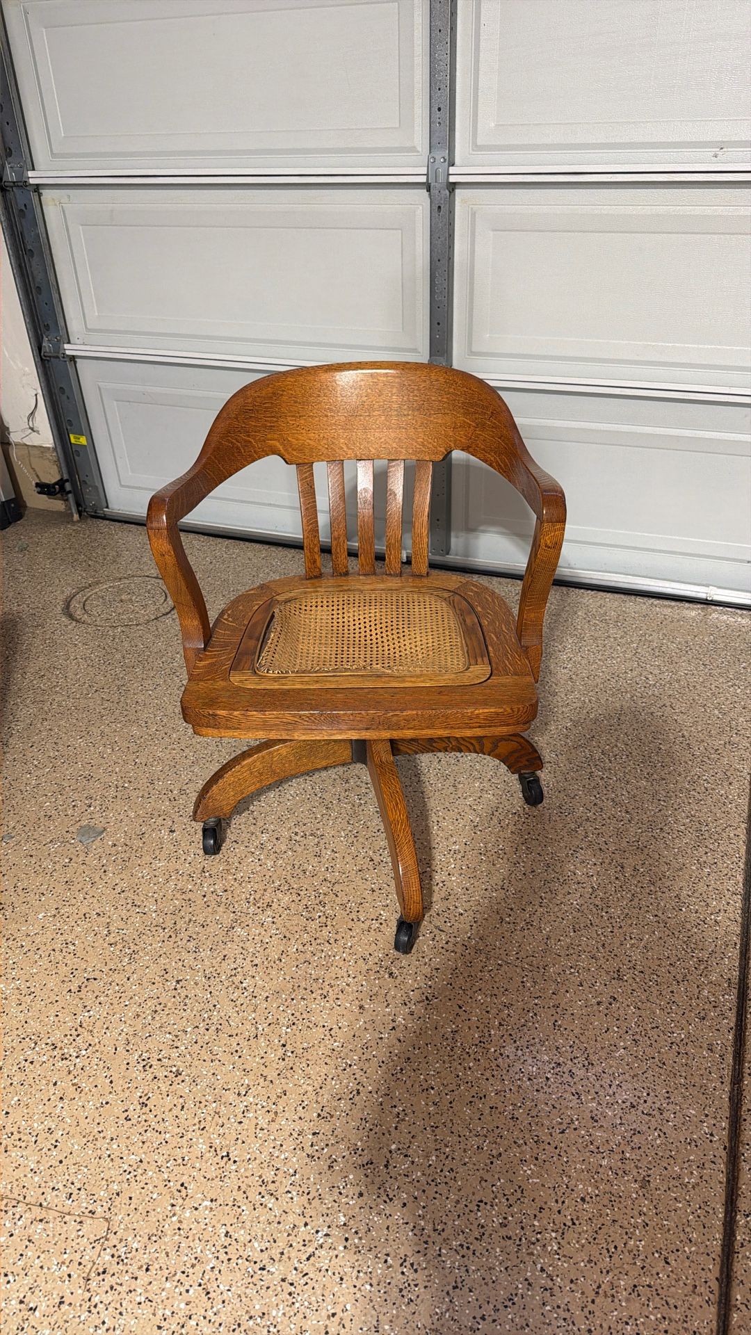 Oak Desk chair, very old. Caning needs to be redone.