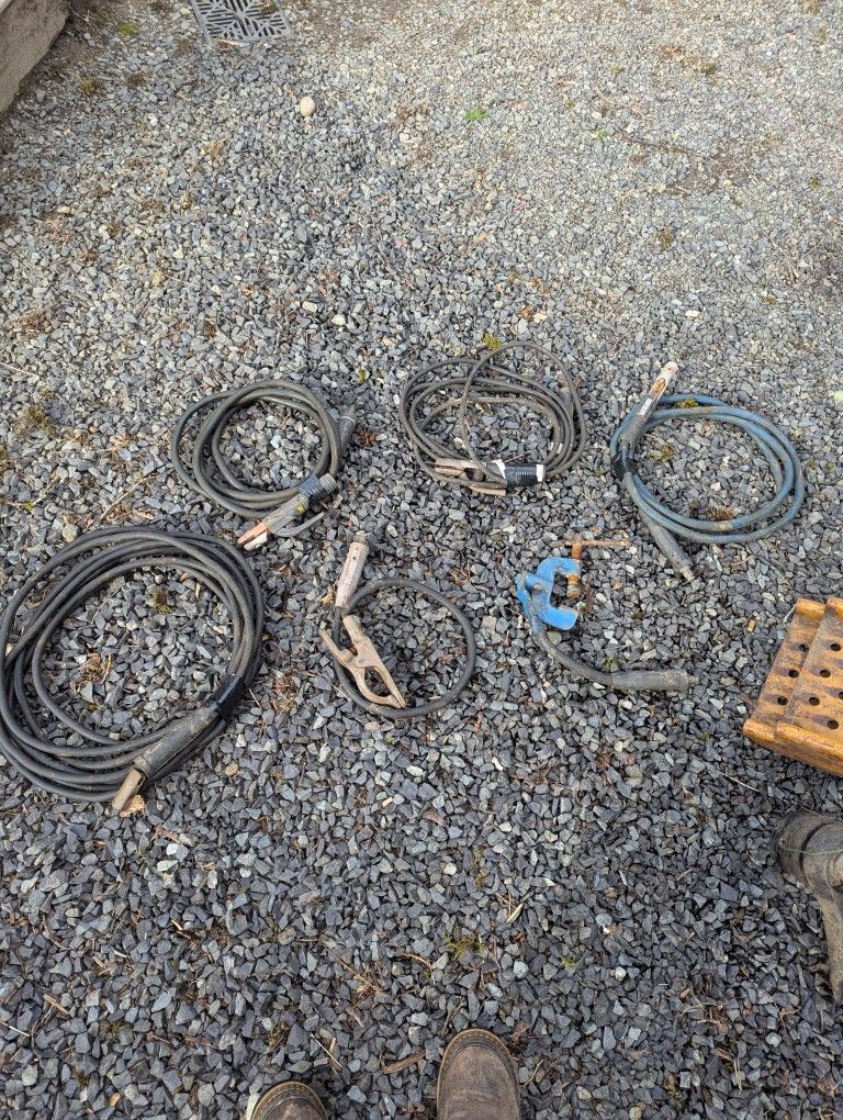 Tweco connections on the end of some. A ground C-Clamp, 2 arc welding electro holders,. The cable alone in the longer 1/0 is worth 250. I don't know the lengths. Eyeball it. If your serious, I'll measure the length