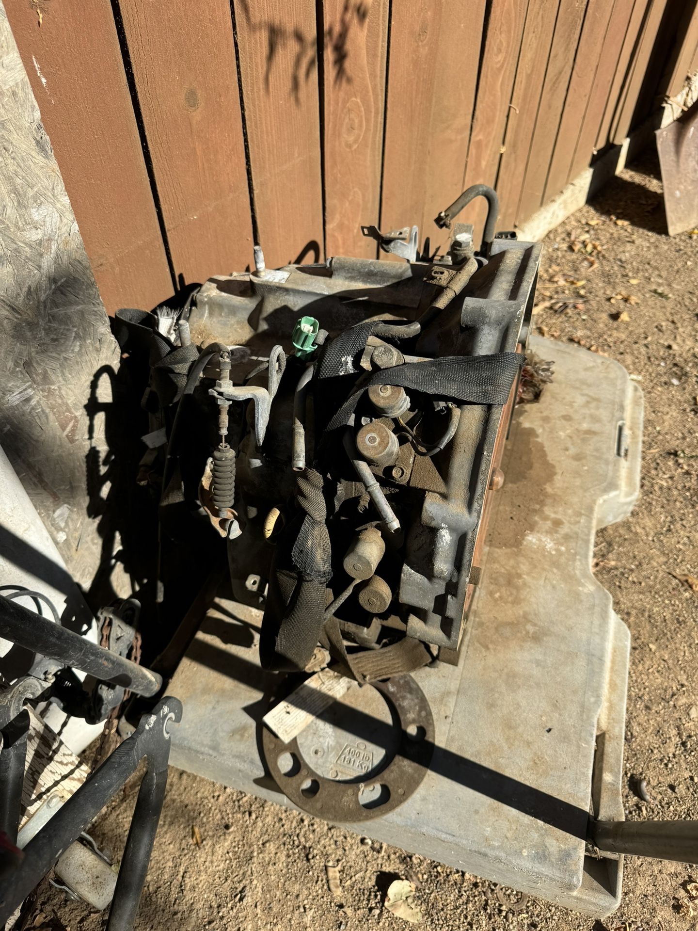 Tenfo esta transmission de venta trabaja muy vien solo que al kitarla se quebro un pedasito de aluminio por debajo en la campana pero no afecta. Pido $100