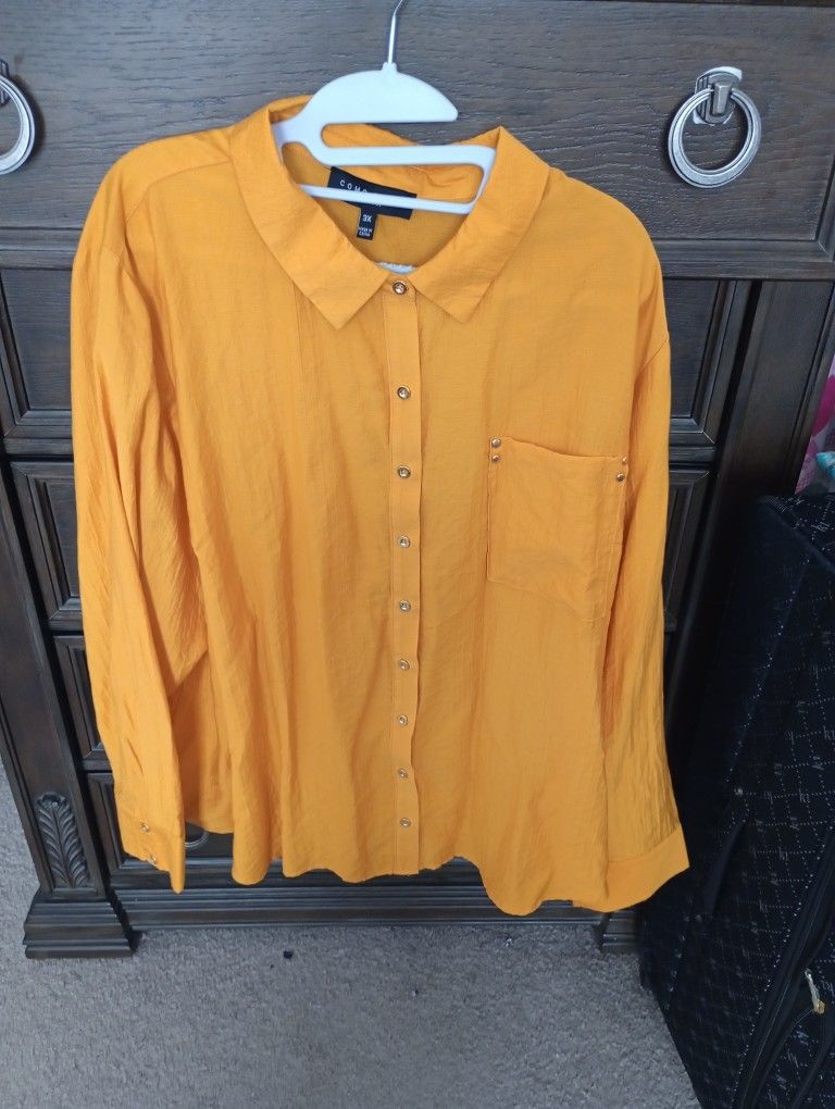 Como Black Women Yellow Long Sleeve Shirt