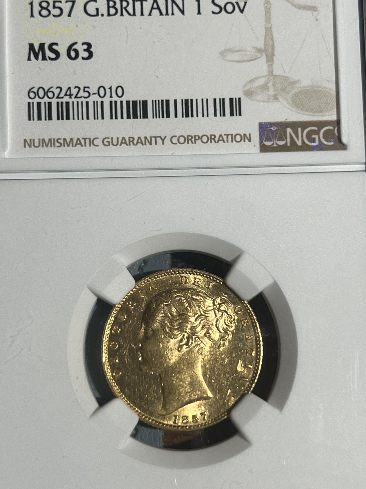 1857 Great Britain England Victoria Gold Sovereign Coin 1S - NGC MS63 (BU UNC) (contact info removed)
