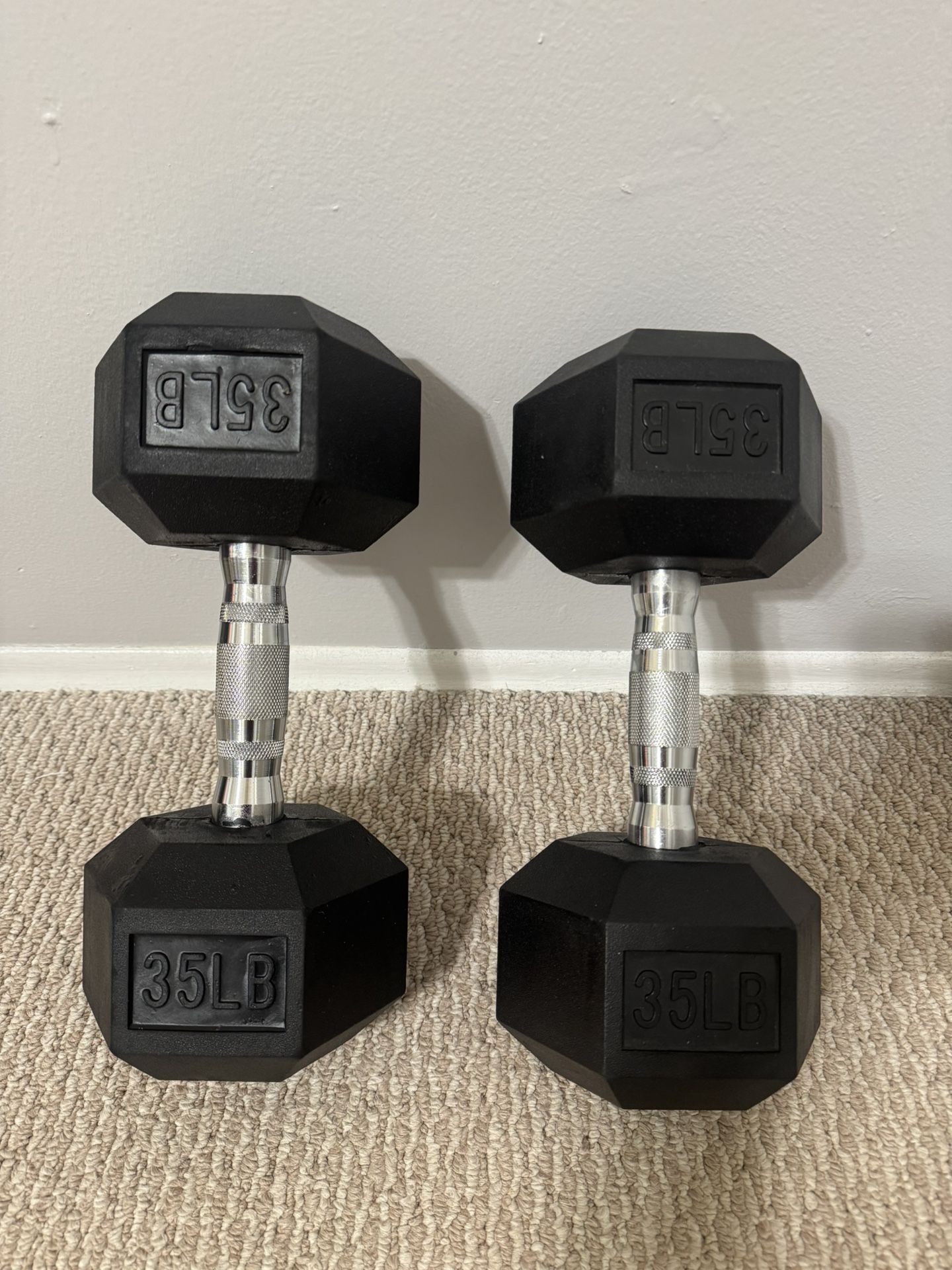 set of two rubber coated hex dumbbells. In perfect condition
