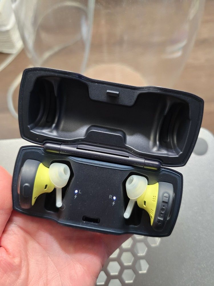 Only used once or twice. Didn't like how they felt in my ear. They've been spitting in a drawer for several years. Charged and ready to go. Could be a great gift.