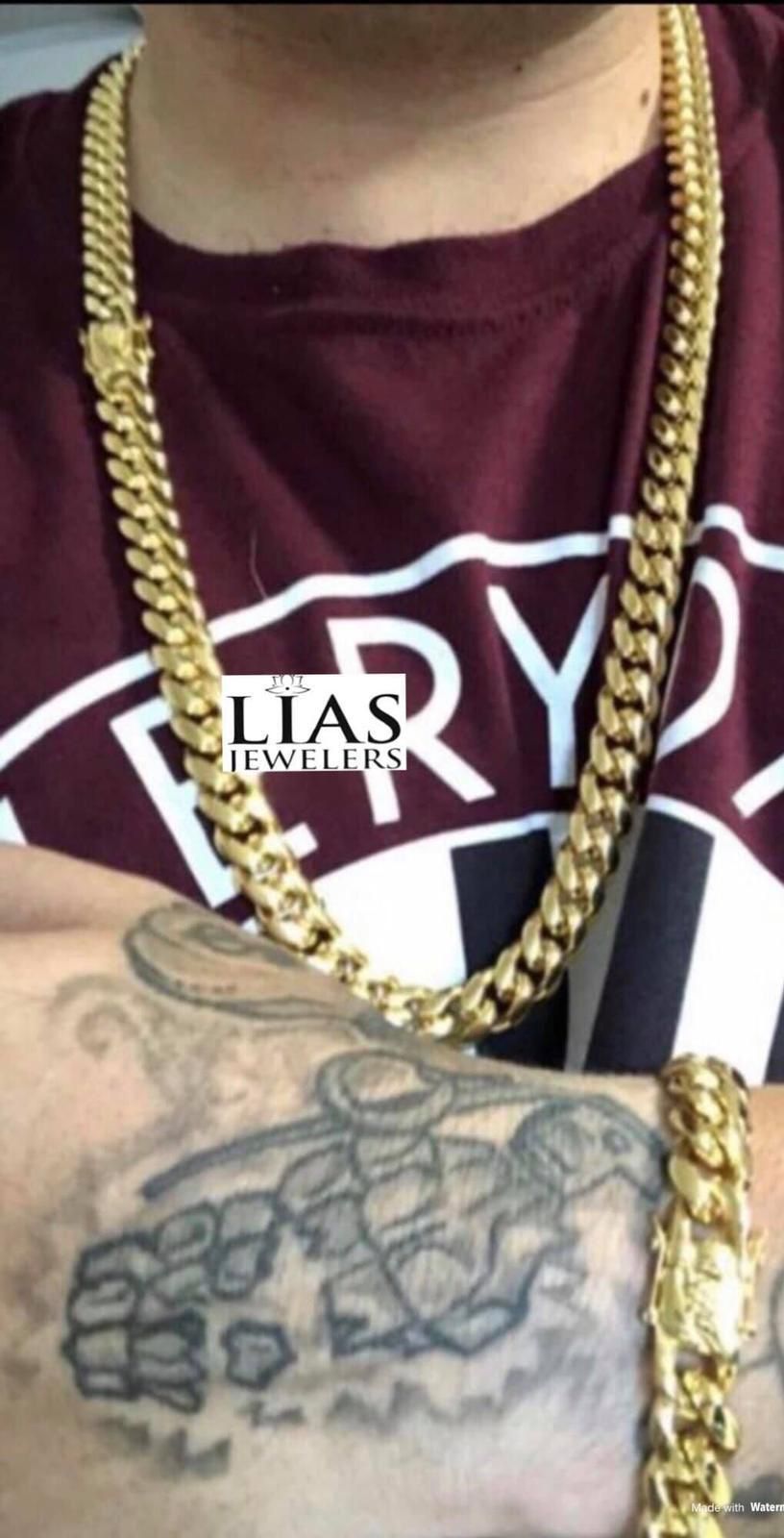 Brand new 18 k yellow gold filled Cuban link chain and bracelet Available in most sizes! Also have men’s jewelry Cuban link set men’s necklace chain bracelet Miami Cuban link tennis link set Figaro chain set