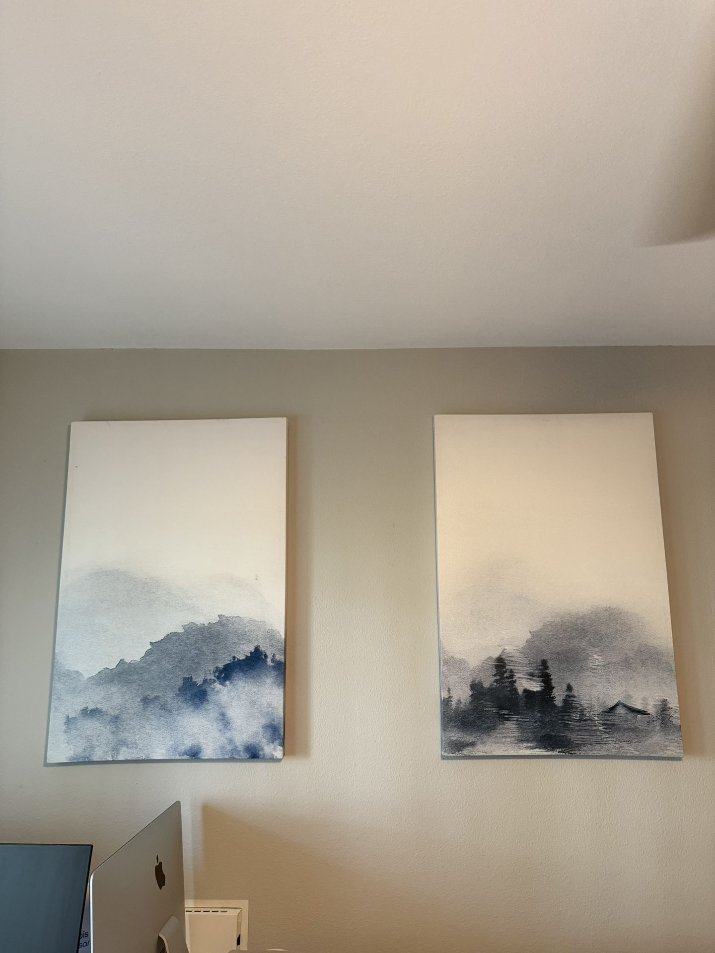 Beautiful set of two large canvas prints featuring a blue mist mountain landscape. Both pieces measure 24” x 36” x 1.5” and are lightweight, easy to hang, and in great condition. Perfect for living rooms, bedrooms, office spaces, or calming minimalist décor. ✔️ Neutral colors that match any style ✔️ Modern, clean aesthetic ✔️ Smoke-free, pet-free home ✔️ Selling because I’m redecorating Pickup in your area. Feel free to send an offer!