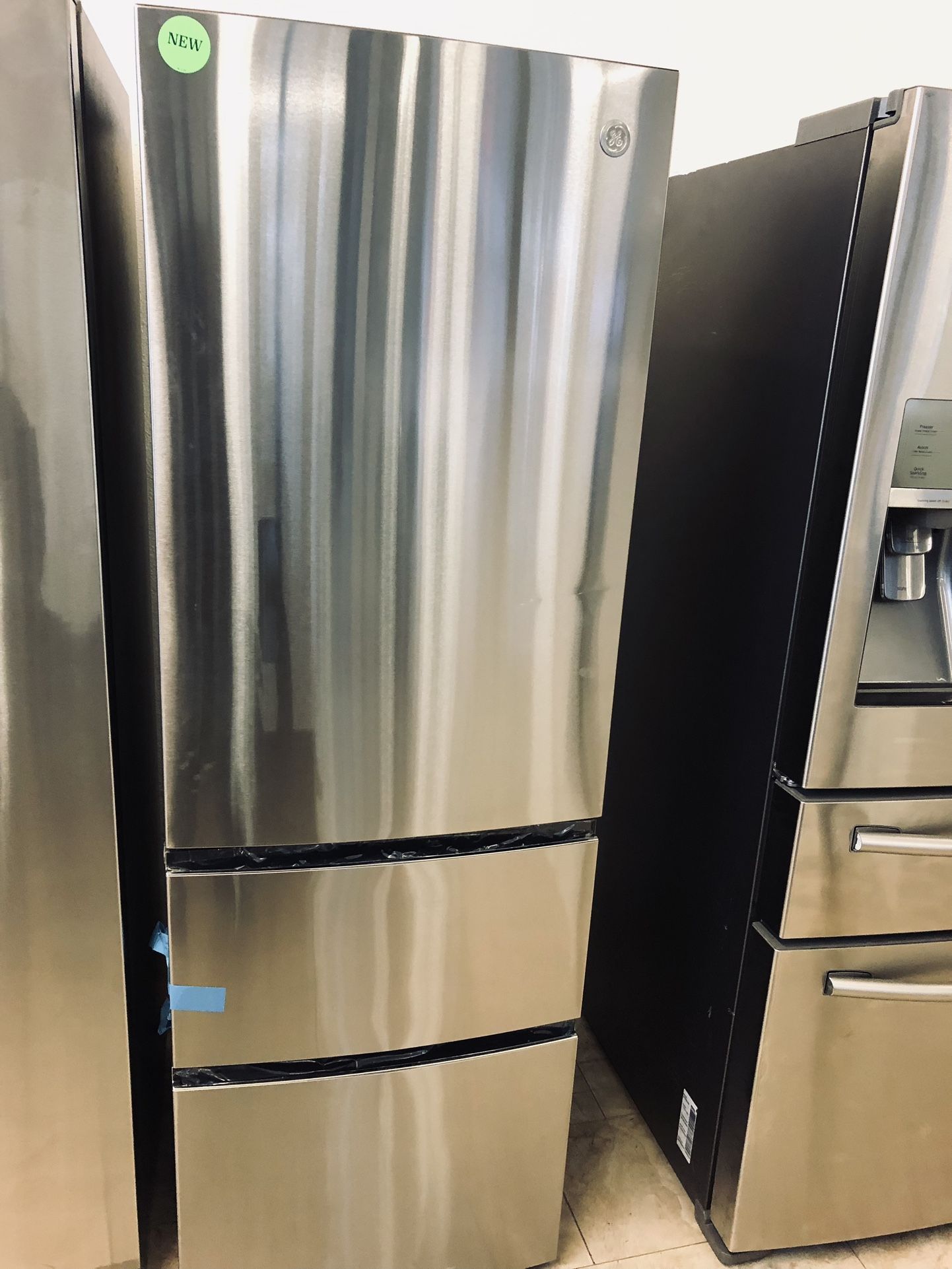 Brand New GE bottom freezer fridge, This is a great fridge for a compact space! 11.9 Cu.Ft. 24” wide This fridge was designed to give plenty of storage for smaller spaces. 248 E Harding Stockton ca 95(contact info removed)352