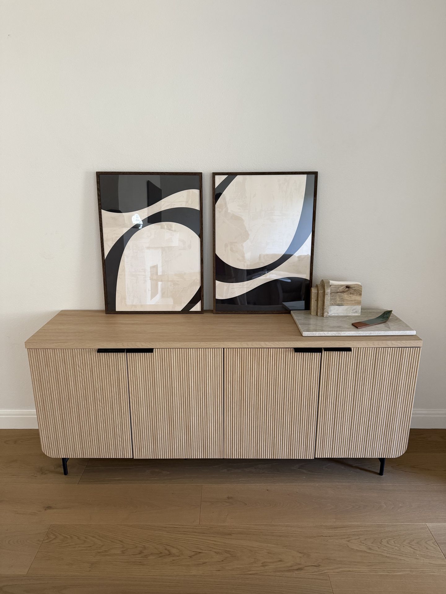 Fluted wood sideboard - can also be used as a tv stand 28.75" H x 69" L x 17.75" W In great condition - used but like new For pickup only