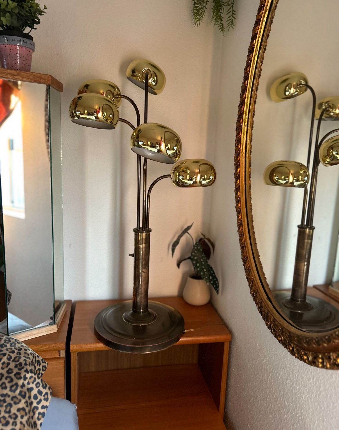 asking 400 cash only Gorgeous mid century waterfall lamp. This piece is absolutely stunning as is, but could benefit from brass cleaner. Adjust the brightness by turning the knob to use 2, 3 or all 5 lights. ~waterfall lamp table lamp dresser lamp sofa table lamp office desk lamp mcm modern mid century midcentury mcm lighting fixture orb ~