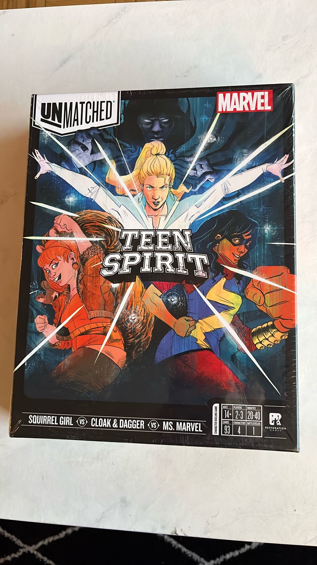 Brand new, unopened Unmatched board game: Teen Spirit. Price at $10. Must pick up.