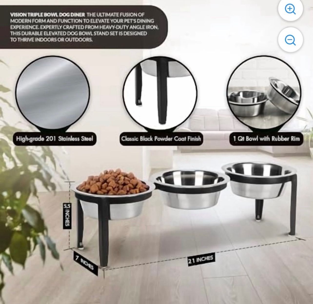 Nmn Designs Vision Triple Diner - 3 Bowl Dog Feeder - Small to Medium Dogs - Multi-Dog Feeding Station - UV Weather Resistant