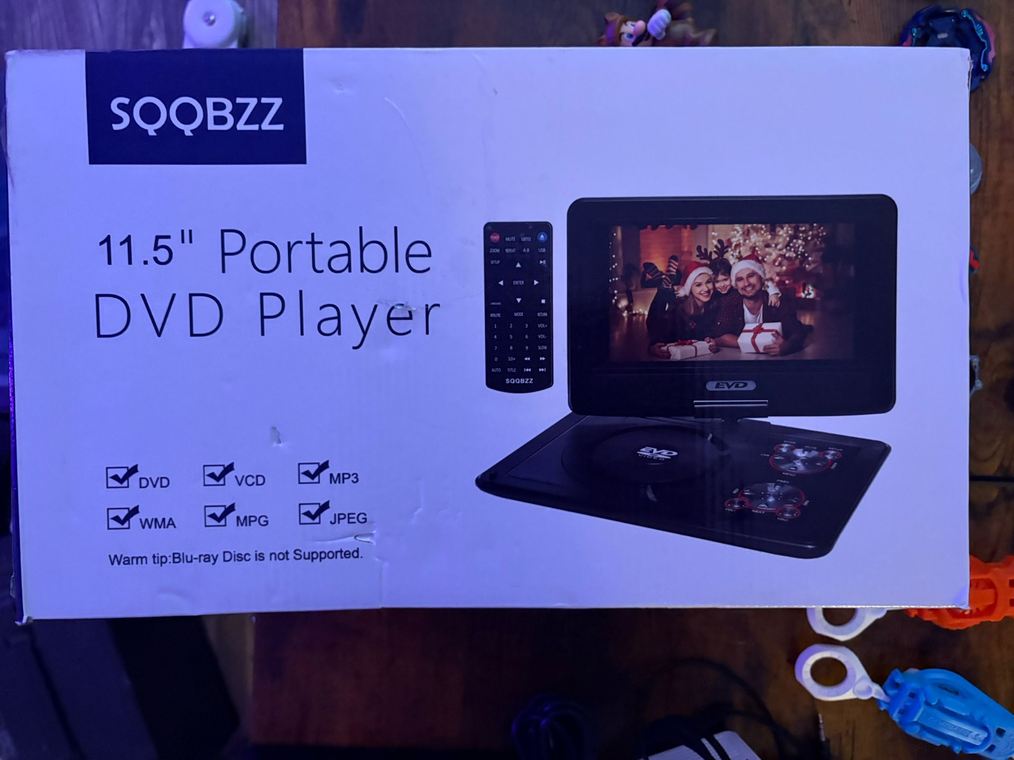 Used a couple times. No remote. 25$ obo 【Portable and Magical】Compact design makes it easy to carry out with you. Take it on your road trip, be companioned by your child, brings tons of fun for your journey. SQQBZZ DVD player can be easily swiveled as a tablet and mounted to the car headrest. 【High Resolution Screen】SQQBZZ portable DVD player adopts 9.5 Inch 800*480 HD swivel screen. Upgraded screen can relieve visual fatigue caused by long-term viewing. Thanks to 270° rotation and 180° flip feature, it provides extreme viewing experience and easy positioning. 【Longer Watching Time】Reliable battery capacity ensures continuous playing for up to 4-6 hours. The portable DVD player also comes with certificated AC power adapter and high quality car charger in the package, no more worries about battery dies out when you out. 【Sonorous and Loud Volume】SQQBZZ portable DVD players equipped with two high-power speakers, which makes the volume louder and clearer. Not enough? There is a 3.5mm earphone jack on the right side of the player so that you can get a concentrated and clear sound. 【Support Multi Formats】DVD,CD, DVD ±R, CD -R(RW), SVCD -R(RW), DVD ±RW, VCD (except Blu-ray). Supports multi-media files via USB and SD Card (up to 32G), such as VOB, AVI, MPEG, MP3, WMA, JPEG. Region-free makes it easy to play discs from all regions. 【WARRANTY】12-MONTH Warranty, 24-HOUR Friendly customer support. Feel free to contact us with any questions you may have. 【Note】 Only supports 720*480 resolution video files and 2650*1440 resolution image files, and does not support 1080P, 4K, or Blu-ray discs.
