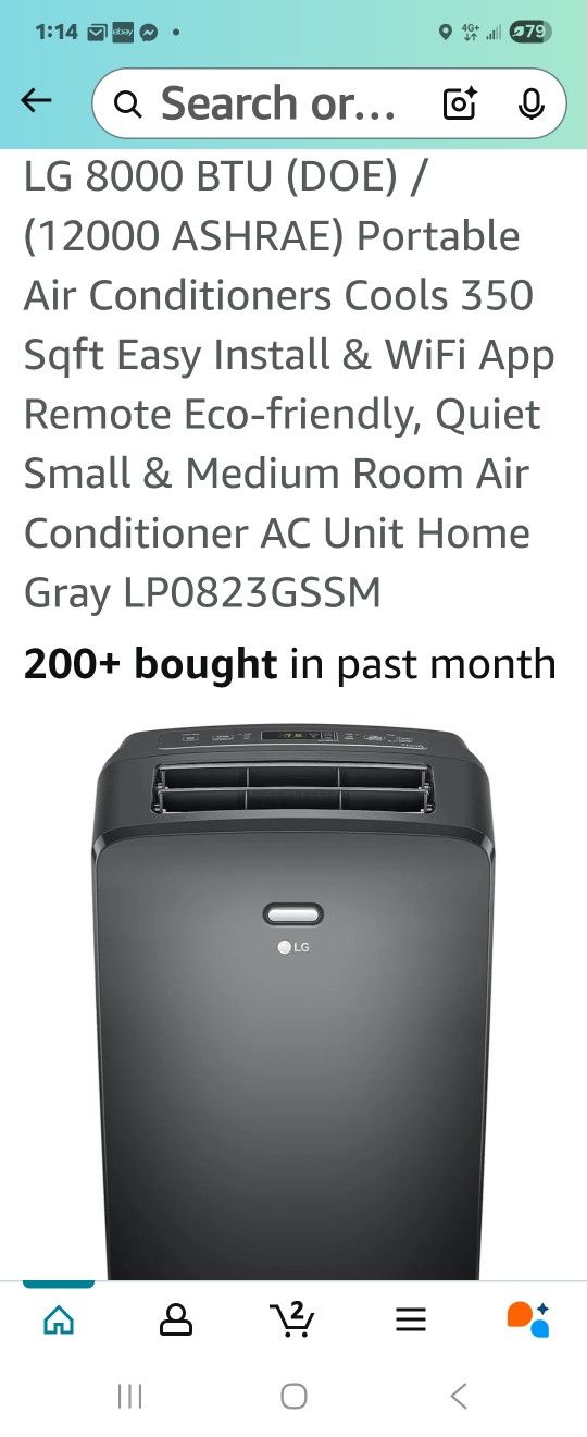LG 8000 BTU (DOE) / (12000 ASHRAE) Portable Air Conditioners Cools 350 Sqft Easy Install & WiFi App Remote Eco-friendly, Quiet Small & Medium Room Air Conditioner AC Unit Home Gray LP0823GSSM