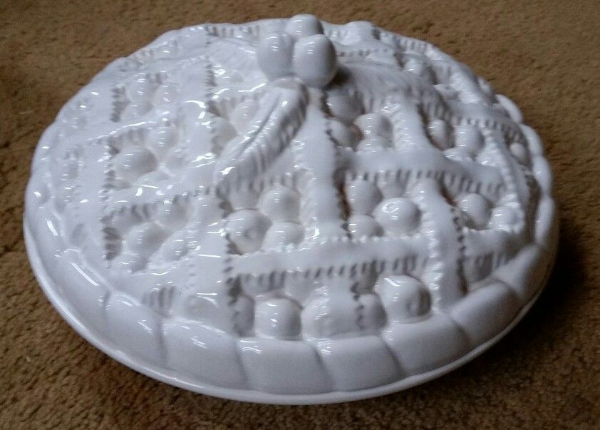 White covered pie plate. 10" diameter. Store any kind of pie in it that you like, as long as it's cherry. That's my favorite.