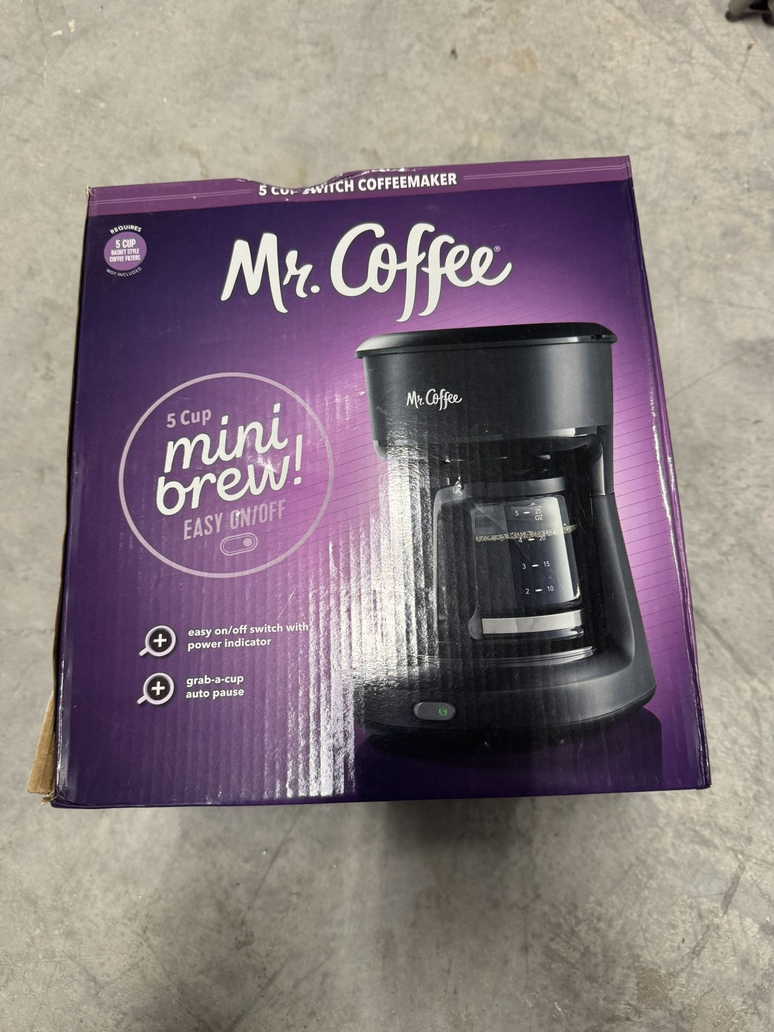 Mr. Coffee 5-Cup Mini Brew Switch Coffee Maker, Black