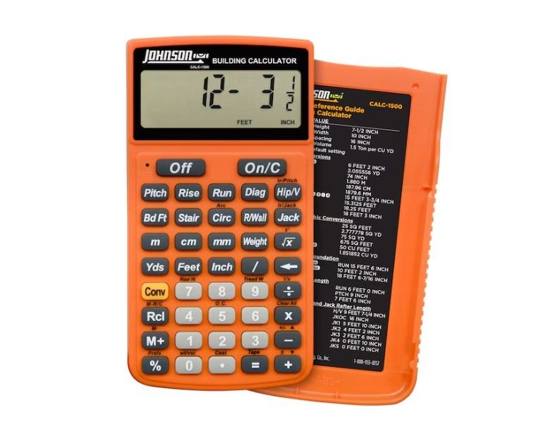 Johnson’s building calculator provides quick and accurate solutions for layout work and estimates, including pre-programmed right angle and stair calculations. Complete stair layouts, as well as roof, rafter and framing with powerful built-in solutions and advanced features to complete your work faster and more efficiently. Use it in the field or office to save time and reduce costs. Its oversized LCD is easy to read and converts measurements in both English and Metric and the paperless tape mode is useful for checking figures while scrolling through the past twenty entries. Comes with durable protective case, user manual and handy reference guide. Work in and convert between feet-inch-fractions, decimal feet-inches and metric, including area D: M: S to decimal degree conversions Calculates weight per volume Stair calculations for risers, treads, stringer length and incline angle; displays run and rise (contact info removed)