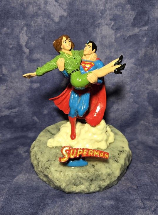 Superman To The Rescue SP-125 limited edition cast metal statue on marble base by Ron Lee, 1994 Depicting Superman carrying Lois Lane in his arms as he flys up and away through the clouds Limited Edition, one of only 750 produced Signed and dated by Ron Lee on top of base Raised Superman comic book title logo on base Minimal wear Small surface imperfection on cloud next to the left of Superman's right foot Please see photos for further Pictured item actual item sold Dimensions: 7" H x 5.5" D Cash preferred or Venmo on meet up. Shipping available, Venmo or PayPal G&S. Available for pick up in Diamond Bar California.