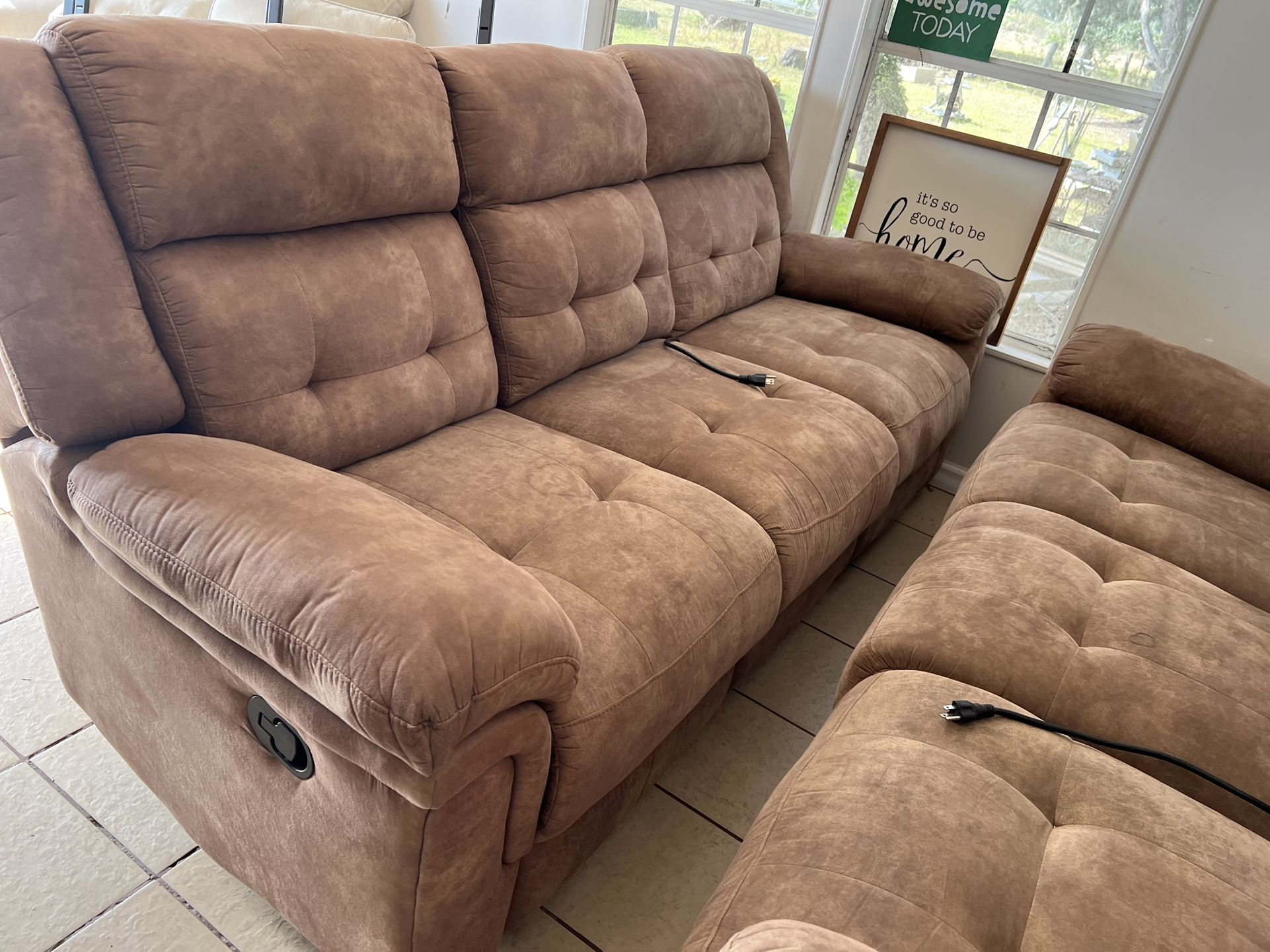 2 -3 Seater Brown Soft Microfiber Fabric Recliners Take both home for $600 or each for $375 Super soft and comfortable No broken springs, have been cleaned and sanitized Local pick up available in Seffner Delivery available for a fee also