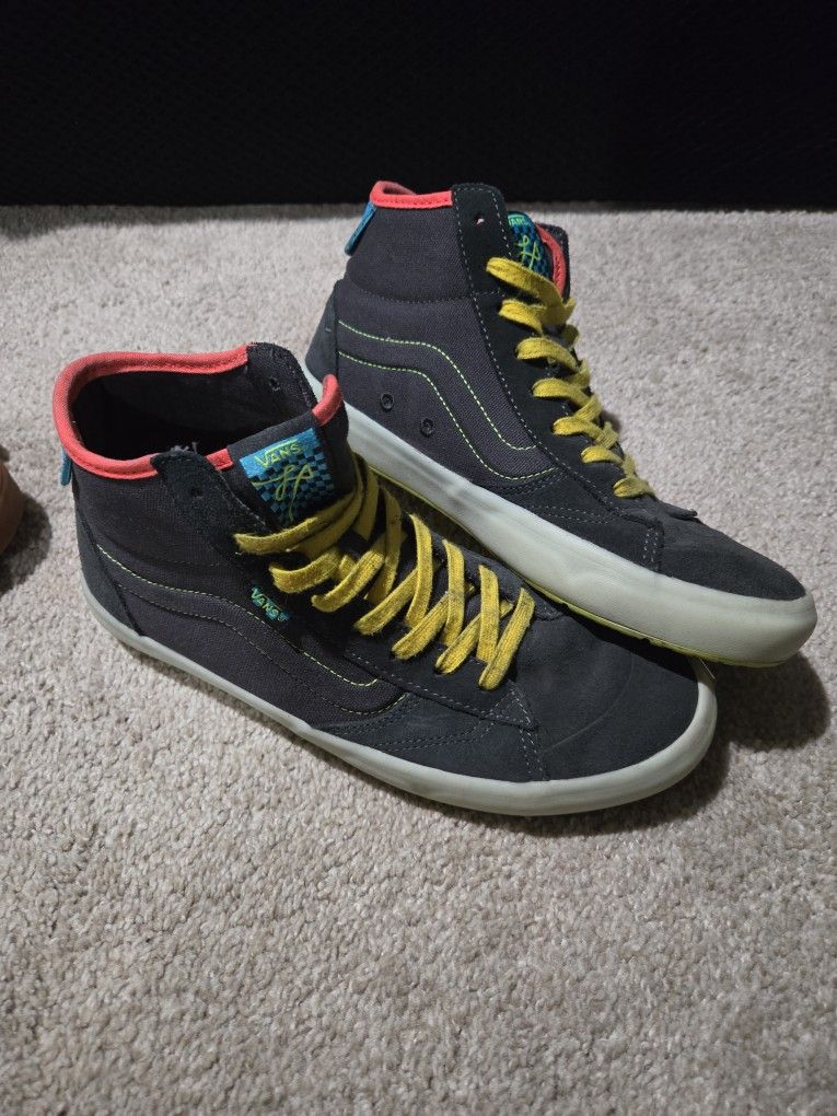 Womens 10 mens 8.5, somewhat narrow, only worn a handful of times. I like them better than sk8 Hi's! Last picture is of all the shoes I have to sell, mostly Vans, some skechers, one pair of north face sneakers. All around the same size, will lower price for multiples!