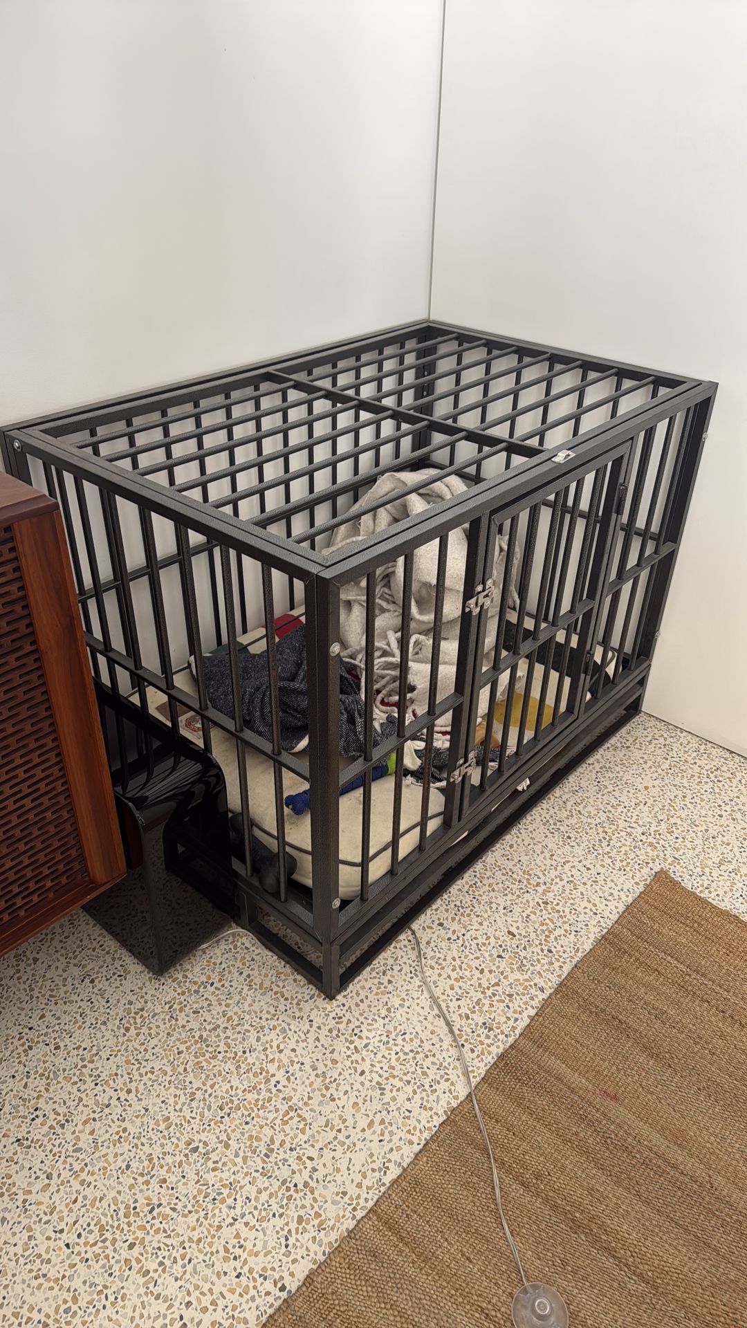 It’s a metal cage for whatever purpose you need. There is a side door that locks and the top opens Pick up only. You can have all the stuff inside as well. Currently it is in Laurel Canyon