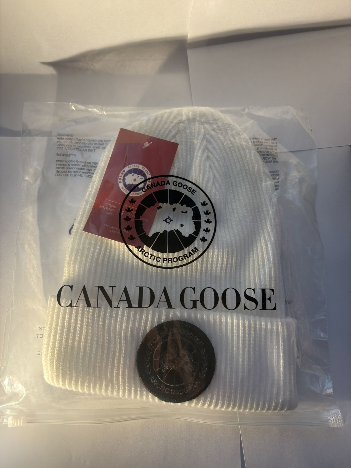 Canada Goose white beanie in great condition. Super warm, stylish, and perfect for winter. Worn only a few times, no stains or damage. • Clean white color • Comfortable + warm Receipt available if needed. Local meetup or drop-off available around/Boston area. Shipping available too. Message me if interested 👍