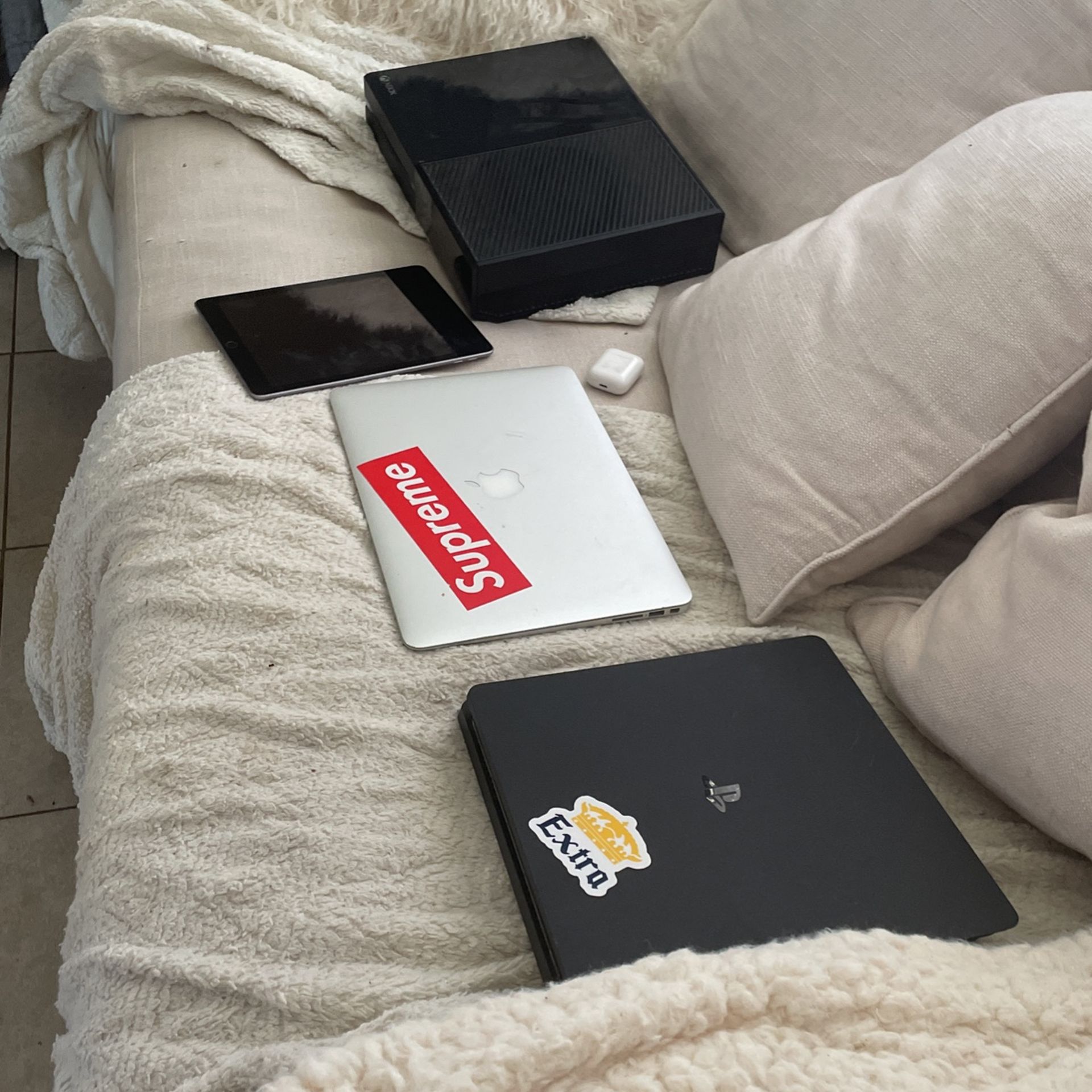 MacBook Air 2013, PS4 with controller headset and cables,XBOX ONE with controller and cables, IPAD, and AirPods